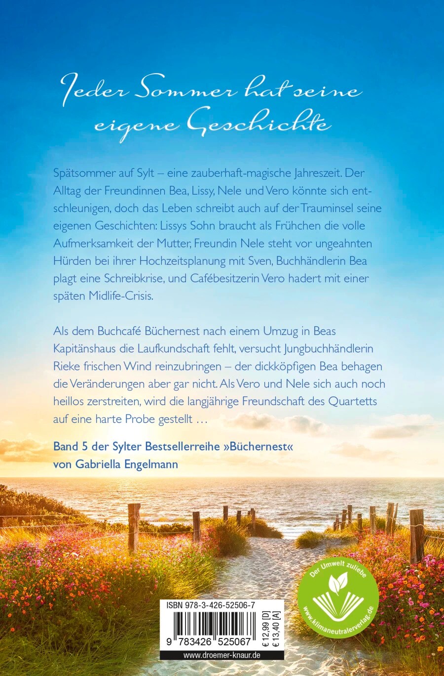 Spätsommer auf Sylt - sanfte Wattewolken tanzen am Himmel, Heckenrosen leuchten um die Wette und magischer Inselzauber verwöhnt Herz und Seele. Der Alltag der vier Freundinnen Bea, Lissy, Nele und Vero könnte sich in dieser zauberhaften Jahreszeit entschleunigen, doch das Leben schreibt auch auf der Trauminsel seine eigenen Geschichten: Lissys Sohn Niels braucht als Frühchen die volle Aufmerksamkeit der Mutter, Freundin Nele steht vor ungeahnten Hürden bei ihrer Hochzeitsplanung mit Sven, Buchhändlerin Bea plagt eine Schreibkrise und Cafébesitzerin Vero hadert mit einer späten Midlife-Crisis. Als dem Buchcafé »Büchernest« nach dem Umzug in Beas Kapitänshaus die Laufkundschaft fehlt, versucht Jungbuchhändlerin Rieke frischen Wind reinzubringen - der dickköpfigen Bea behagen die Veränderungen aber gar nicht. Als Vero und Nele sich auch noch heillos zerstreiten, wird die langjährige Freundschaft des Quartetts auf eine harte Probe gestellt ...