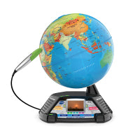 - Mit dem interaktiven Stift können alle Orte auf dem Globus angetippt werden