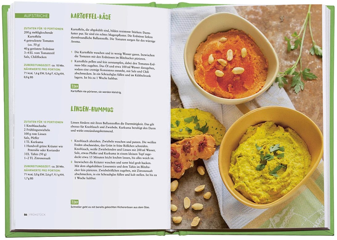 Im zweiten Teil folgen 60 Rezepte für mehr Darmgesundheit - mit speziellen Programmen zur Prävention sowie zur Darmsanierung z. B. nach einer Antibiotika-Behandlung.
