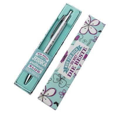 Zu jedem Anlass ein hochwertiger Kugelschreiber eine aufmerksame Geschenkidee – vor allem, wenn er mit dem Namen des Beschenkten personalisiert ist. Unsere ansprechende Auswahl an Kulis, in edlem Geschenketui mit originellem Spruch, wird stilbewusste Ladies und echte Kerle begeistern. Ausdrucksstarke, maskuline Designs mit insgesamt 50 Männernamen, feminine Muster für die 50 Frauennamen und 20 allgemeine Titel machen das neue Sortiment an kreativ gestalteten H&H Kugelschreibern aus. Die Kulis liegen angenehm in der Hand und sorgen für ein elegantes Schriftbild.