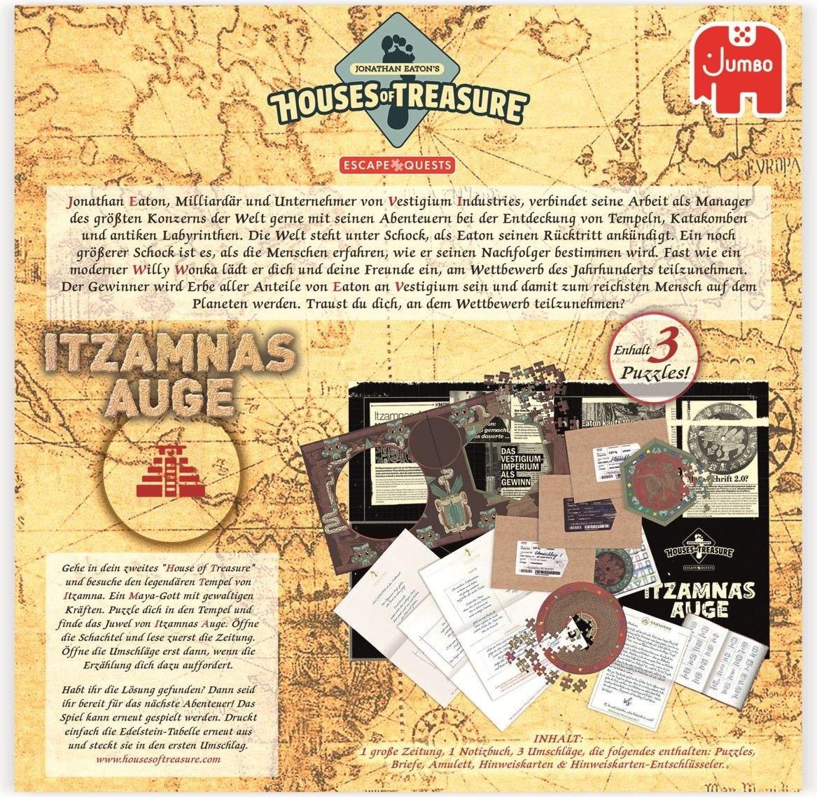 ''Das Abenteuer geht weiter - gehe in dein zweites House of Treasure'''' und besuche den legendären Tempel von Itzamna. Ein Maya-Gott mit gewaltigen Kräften. Puzzle dich in den Tempel und finde das Juwel von Itzamnas Auge. Öffne die Schachtel und lese zuerst die Zeitung. Öffne die Umschläge erst dann, wenn die Erzählung dich dazu auffordert. Bist du bereit für diese Aufgabe?''''''.