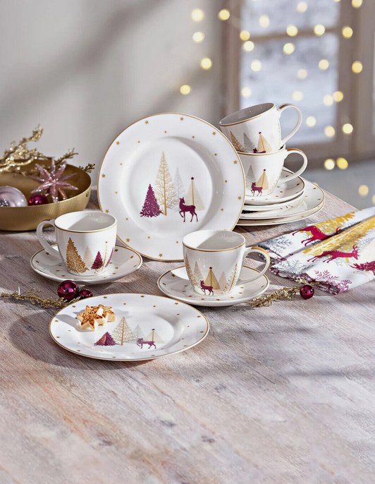 Machen Sie Ihre Einladung zu etwas ganz Besonderem. Das wunderschöne Kaffeeservice „Zauberwald“, 12-teilig, macht den Tisch zur Tafel. So schmecken Ihren Gästen Kaffee, Tee, Kuchen oder süße Teilchen gleich nochmal so gut. Die harmonischen Farben lassen sich mit Servietten oder Tischwäsche in entsprechenden Tönen toll kombinieren. So werden Sie zum perfekten Gastgeber, bei dem sich Freunde und Familie rundum wohlfühlen.