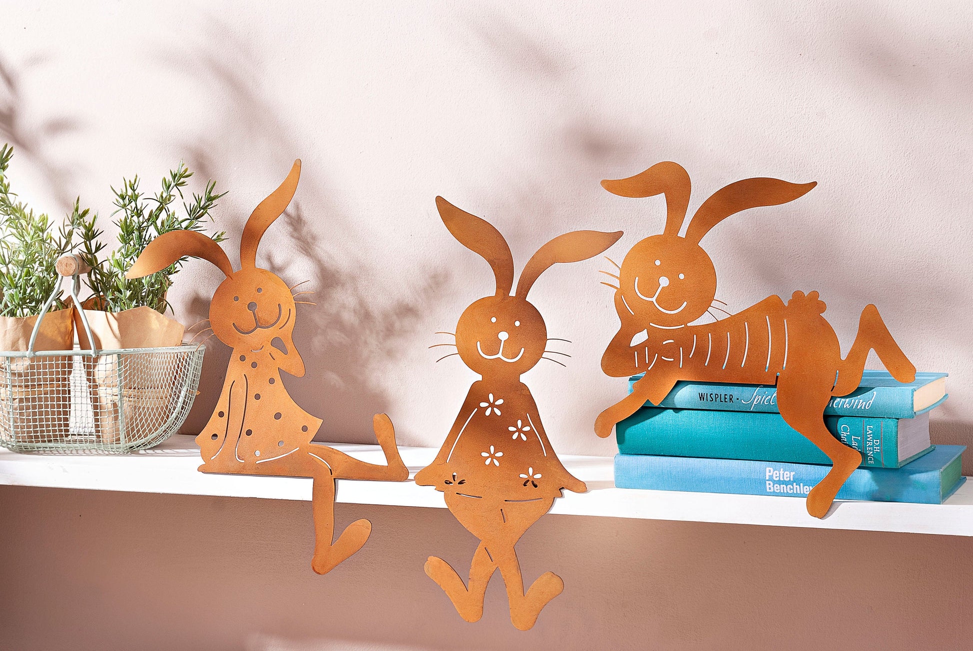 Zum Dekorieren und Verschenken, nicht nur zu Ostern: Die Kantenhocker „Lustige Hasenbande“, 3er-Set, verzaubern durch ihren kecken Charme und sorgen für eine fröhliche Atmosphäre.