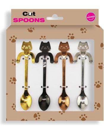 * Süsses Dekorationsset mit Kätzchen * Löffelchen können am Tassenrand «eingehakt» werden * Farben: Gold, Schwarz, Kupfer, Silber * Material: Edelstahl * Masse: 7 x 15 x 2 cm.