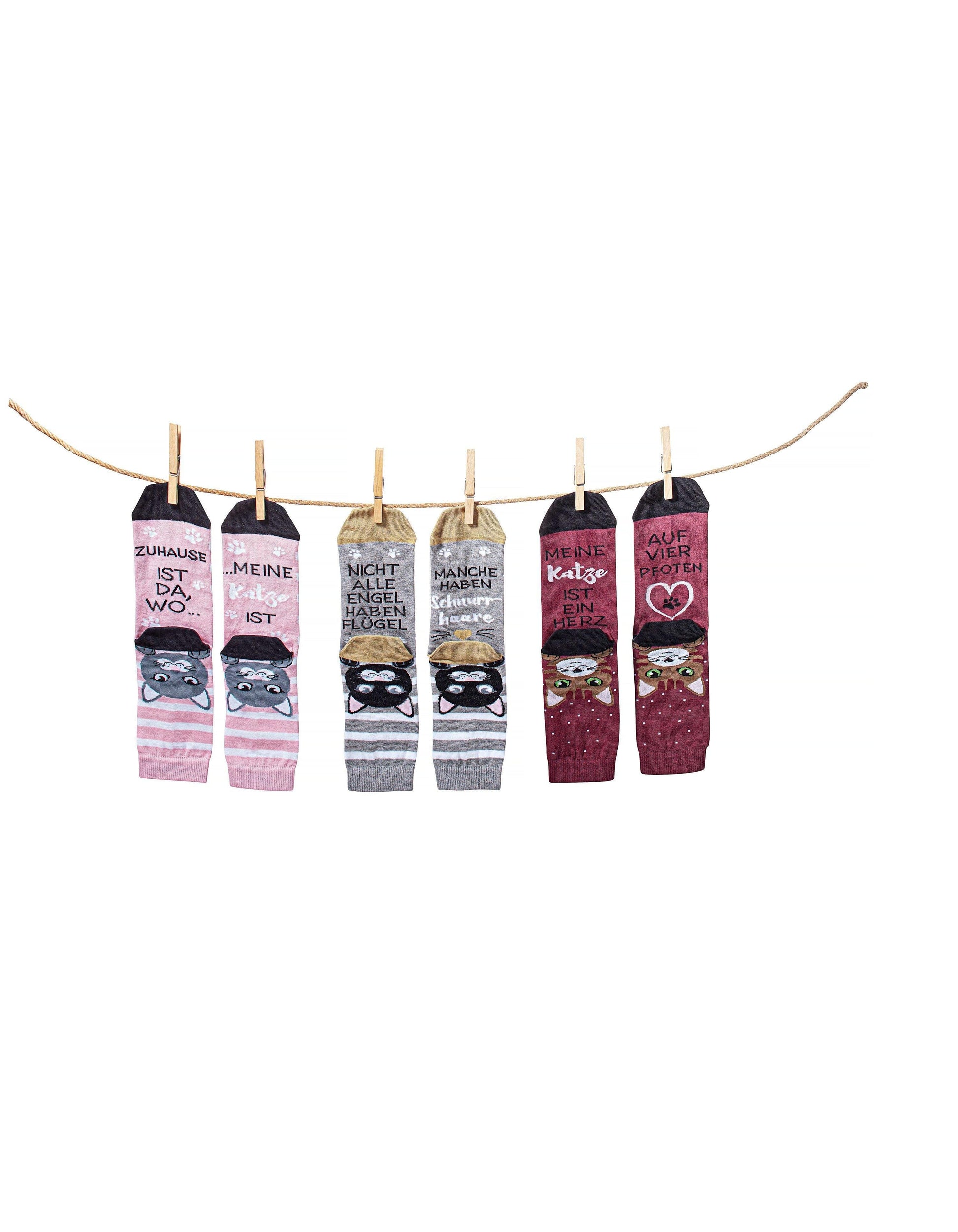 Katzensocken mit lustigen Sprüchen, 3er-Set