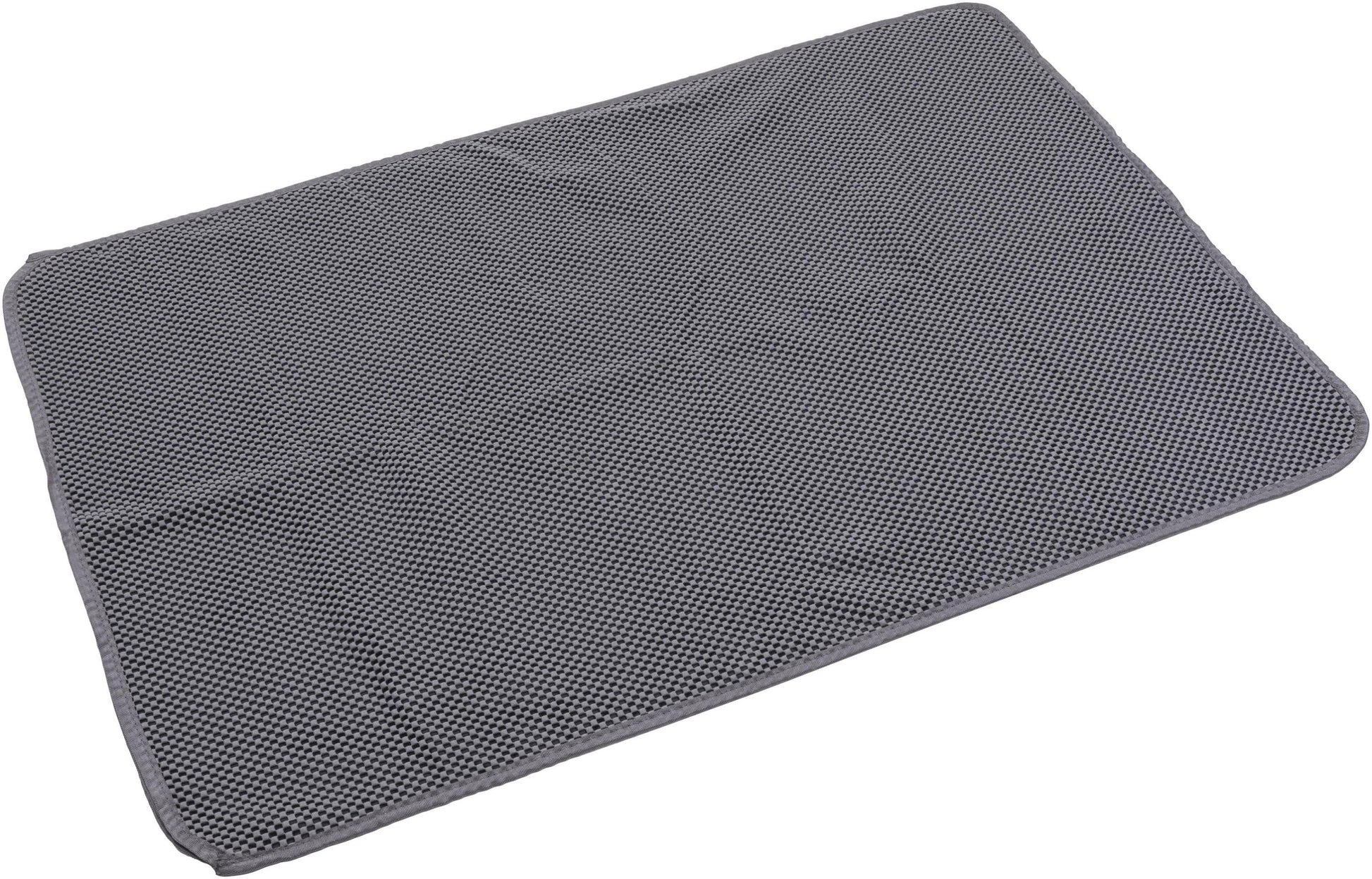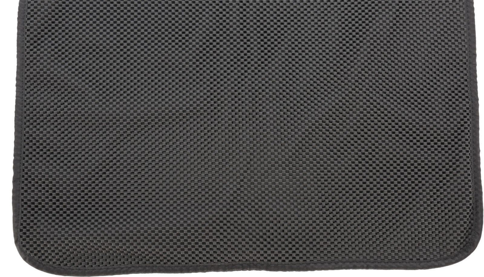 Katzenbesitzer kennen das Problem: Das Katzenstreu aus dem Katzenklo verteilt sich im ganzen Haus oder der Wohnung. Nach der Benutzung ihrer Toilette nimmt die Katze an den Pfoten immer wieder etwas Streu mit. Mit der Katzenstreu-Matte wird diese Verteilung ausgebremst: Dank ihrer strukturierten Oberfläche fängt sie die Streu auf. Die Streu verbleibt auf der Matte, rutscht durch die strukturierte Fläche und lässt sich auch wieder zurück in die Katzentoilette befördern. Denn die Katzenstreu-Matte ist dreilagig: Ober- und Unterseite sind mit Struktur gearbeitet, dazwischen befindet sich eine glatte Lage, von der aus Sie die gesammtelte Streu zurück in die Katzentoilette oder in den Mülleimer geben können. Das Aussenmaterial der Katzenstreu-Matte ist schön weich und schreckt so auch empfindliche Katzen nicht ab.