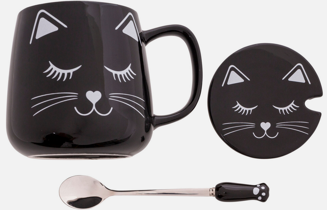 Katzentasse mit Deckel & Löffel “ • Grosser Becher im Katzen-Design • Beidseitig mit Katzen-Gesicht • Ideal als Geschenk! • Füllmenge: 450 ml • Aus Porzellan