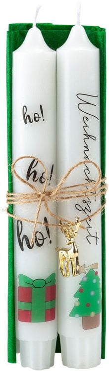 Bastelset für 6 selbst gestaltete Kerzen Mit Weihnachts- und Silvesterdesigns Inkl. hübschem Verpackungsmaterial Edle Kerzen-Präsente selber basteln - mit dem Kerzen-Set mit Tattoo-Vorlagen Kerzen tätowieren? Aber ja! Das gelingt mit den Tattoofolien ganz einfach und macht aus schlichten Kerzen einzigartige Schmuckstücke mit lieber Botschaft. Die fertigen Kerzen sehen richtig toll aus und werden mit dem beiligenden Verpackungsmaterial zu edlen Geschenken. Zum Bekleben der Kerzen schneiden Sie einfach ein oder mehrere Tattoos aus dem Bogen aus. Zur Auswahl stehen weihnachtliche Motive und Neujahrswünsche: "Zauberhafte Weihnachtszeit", "ho! ho! ho!", "Kaminfeuer to go", "Wohlfühllicht", "Guten Rutsch ins neue Jahr!", "Wünsch dir was ", "Happy new year 2024", die Zahlen von 1 - 24 für einen Kerzen-Adventskalender plus passende Motive wie Sektgläser, Tannenbaum, Kerzen u.m. Das Applizieren der Tattoos ist wirklich leicht: Einfach das gewünschte Motiv vom Bogen ausschneiden, in Wasser anfeuchten und dann das sich lösende Tattoo auf der Kerze platzieren. Kurz trocknen lassen, fertig! Zum Verpacken steht dunkelgrünes Seidenpapier bereit. Damit und mit den hübschen Hirsch-Anhängern, die Sie mit etwas Hanf-Band um die eingewickelten Kerzen binden, haben Sie ganz schnell zauberhafte kleine Geschenke, über die sich jeder freut. Denn Kerzenlicht ist in der Winter- und Weihnachtszeit einfach unverzichtbar! Kerzen-Set mit Tatttoo-Vorlagen "Weihnachten & Silvester", 17-teilig: 6 weiße Kerzen; je Ø 2,2 cm, 18 cm Länge 3 dunkelgrüne Seidenpapiere, je 50 x 75 cm 1 Hanfband; 200 cm lang 6 goldfarbene Metallhänger in Hirschform; je 1,5 x 3 cm (B x H) 1 Stickervorlage mit 25 Kerzen-Tattoos Bestellen Sie sich dieses tolle Set gleich jetzt hier online - das Schmücken und Verschenken der Kerzen macht einfach Spaß!