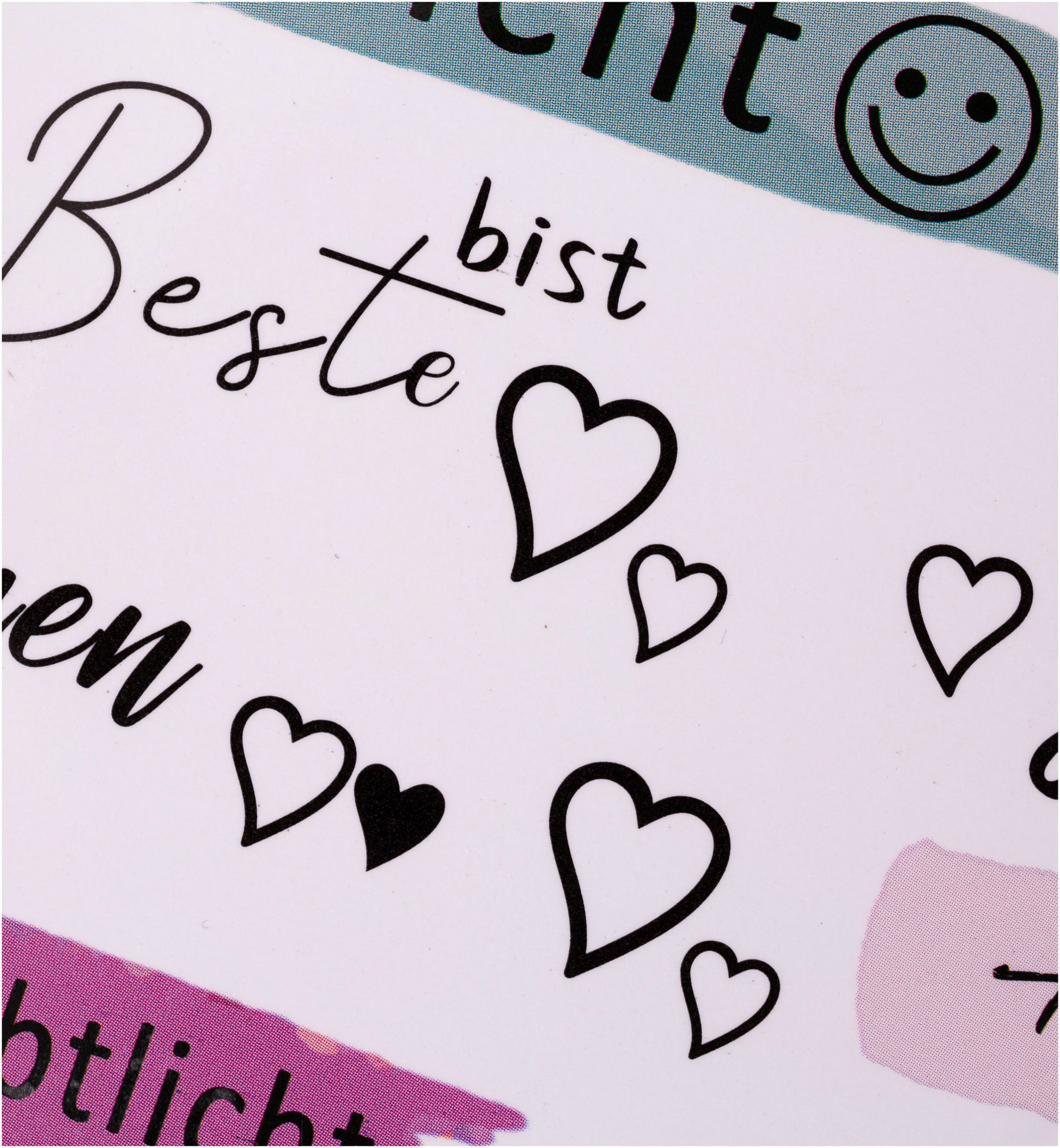 Zum Bekleben der Kerzen schneiden Sie einfach ein oder mehrere Tattoos aus dem Bogen aus. Zur Auswahl stehen viele verschiedene Botschaften und Wünsche: z.B.