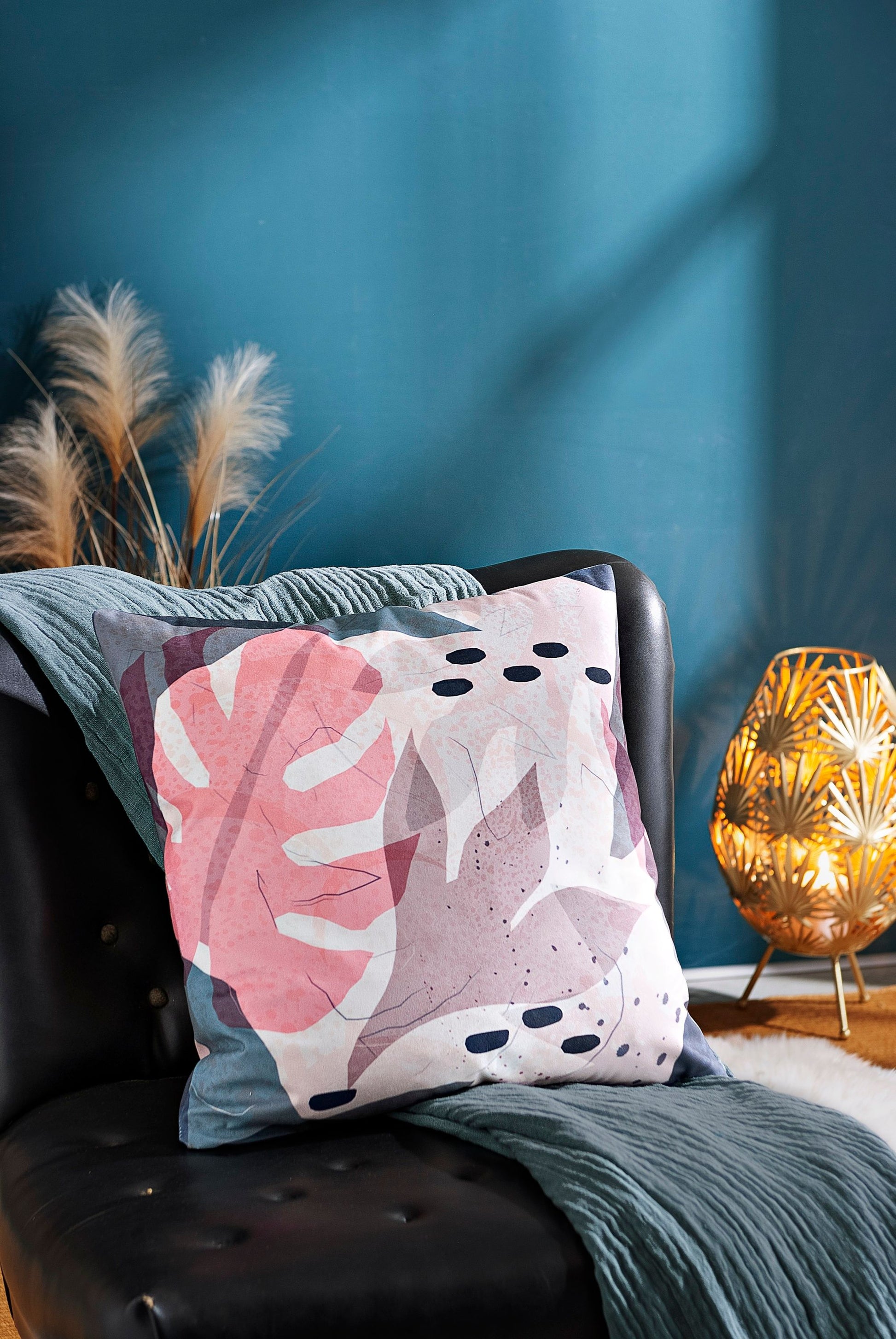 Peppen Sie Ihre Zierkissen modisch auf: Die Kissenhülle &bdquoLeaves&ldquo mit schicken Blätter-Dessin sorgt für das gewisse Etwas.