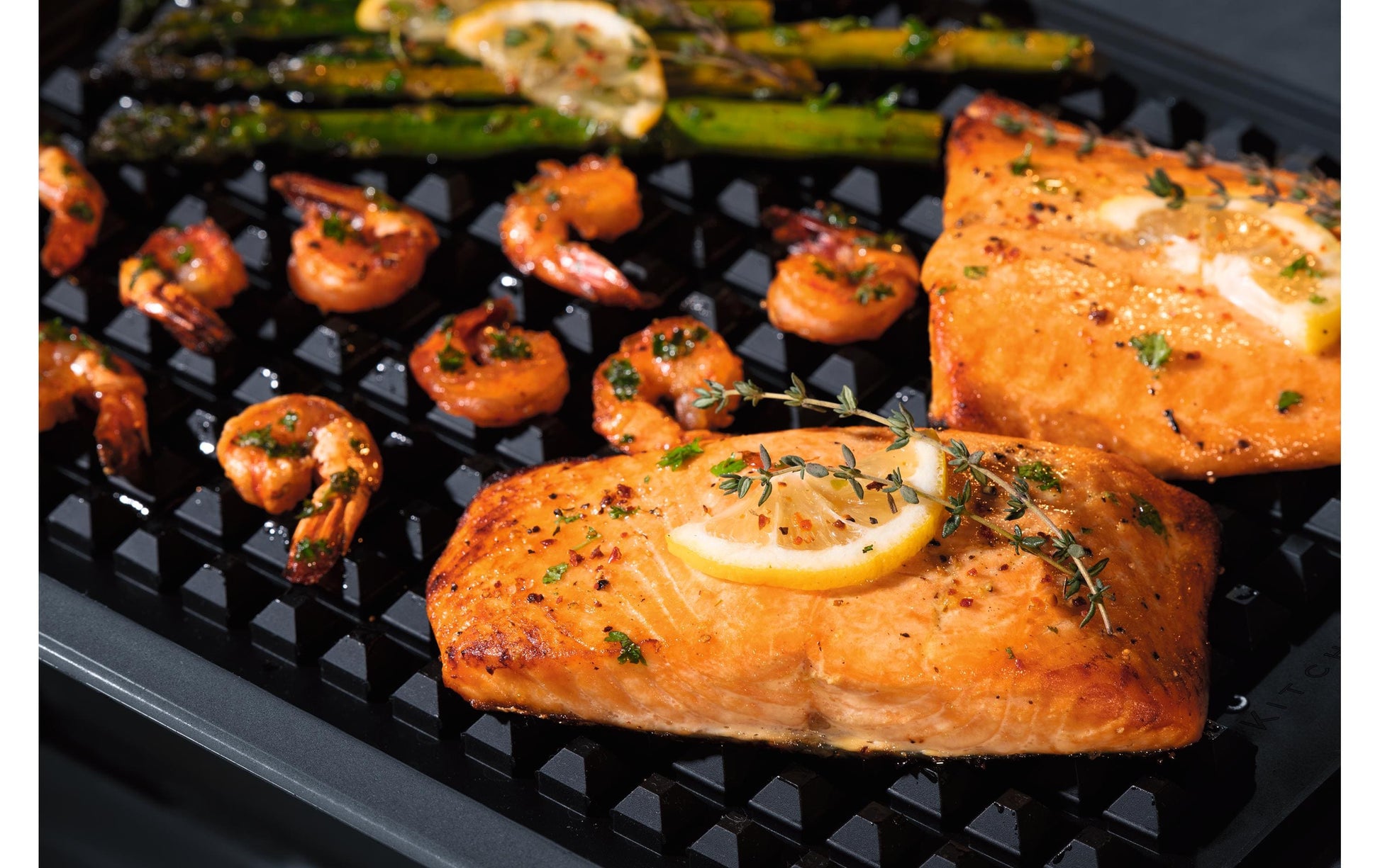 Diese multifunktionale und modular bestückbare Silikonbackmatte für den Backofen ermöglicht fetarmes Essen aus dem Backofen. Durch die einzigartige Pyramidenstruktur können Lebensmittel wie z.B. Fisch, Fleisch aber vor allem auch Gemüse hervorragend im Backofen zubereitet werden. Durch die punktuelle Auflage des Lebensmittels auf der Pyramidenstruktur, kann die heisse Umluft des Backofens um das Gargut zirkulieren und somit, anders als beim herkömmlichen Backen auf Backpapier, ein rundum knuspriges Ergebnis erzielen. Der Vorteil dabei besteht darin, dass das Essen nicht in seinem eigenen Fett oder Saft liegt. Gleichzeitig fängt der umlaufende Rand der Matte alle Flüssigkeiten auf und ermöglicht eine anschliessende Weiterverwendung. Ein Wenden der Lebensmittel ist daher nicht mehr notwendig und die Garzeit wird durch die optimierte Luftzirkulation verkürzt, was Zeit und Energie spart.