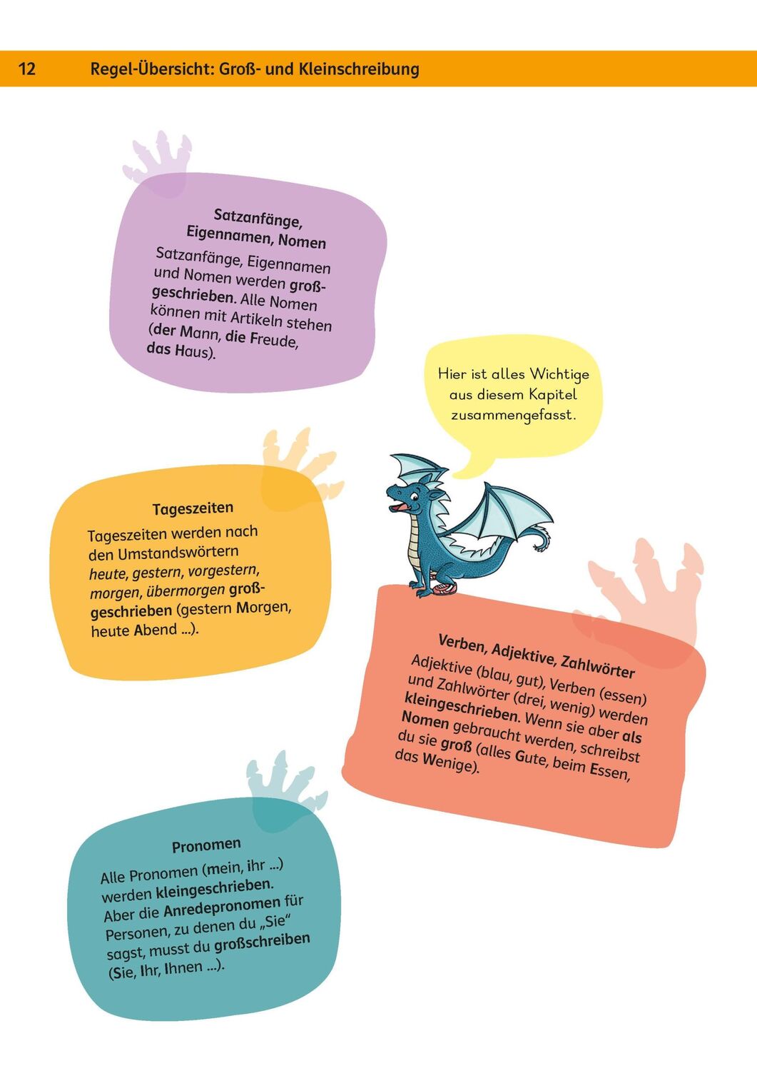 - Mehr als 300 Übungen, Merkkästen und Zusammenfassungen zu allen Bereichen des Faches Deutsch: Rechtschreibung, Sprache untersuchen, Lesen und Leseverständnis, Präsentieren und Zuhören, Texte schreiben