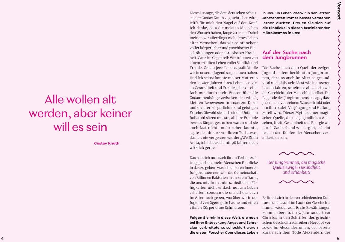 "Je vielfältiger die Ernährung, desto vielfältiger das Darmmikrobiom", weiß die Darmexpertin Anita Frauwallner, die seit über 30 Jahren am Darm und seinen Bewohnern forscht. Der Stand der Forschung zeigt: Ein gesunder Darm verbessert Ihre mentale und körperliche Fitness, Konzentration und Erinnerungsvermögen. Er verringert Ihre Infektanfälligkeit und reduziert Entzündungsvorgänge. Er hält Sie jung.