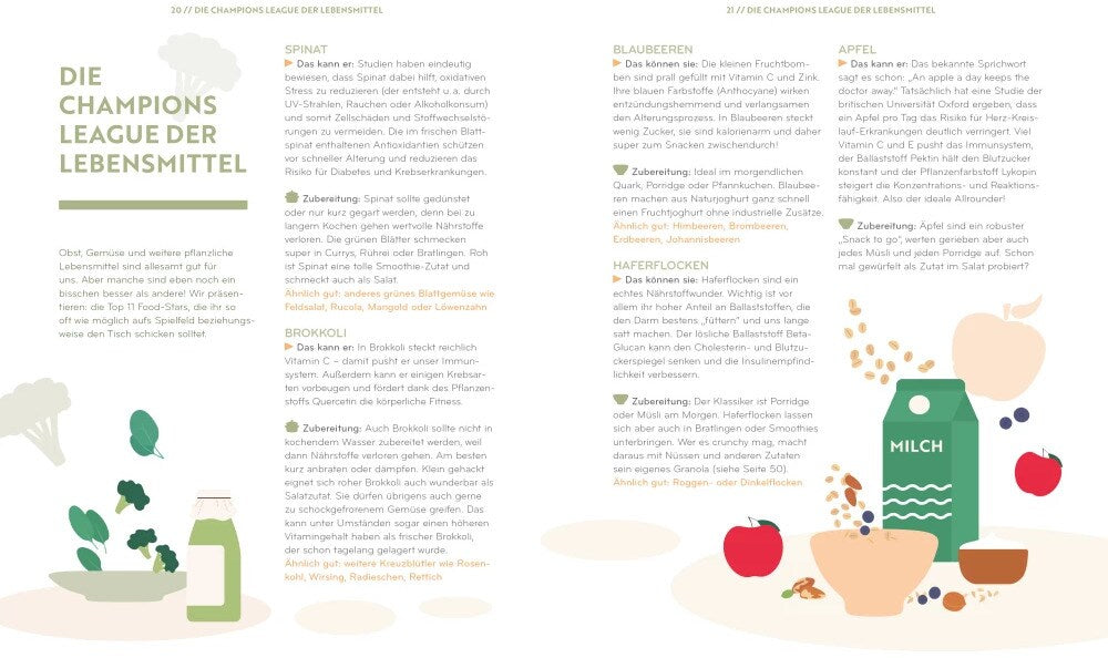 Fussballstar aus München trifft auf Top-Ernährungsmediziner aus Hamburg - zusammen sind Thomas Müller und Dr. Matthias Riedl das perfekte Team! Der eine weiss aus eigener Erfahrung, wie er seinen Körper und seine Leistung mit gesundem Essen pushen kann. Der andere bringt als Experte das wissenschaftliche Knowhow mit. Gemeinsam verfolgen sie ein Ziel: umfassend über gesunde Ernährung zu informieren und zu zeigen, wie viel Spass Kochen mit vielen Zutaten machen kann.Was macht satt und fit? Wie werden Kinder zu neugierigen Essern? Und welche Lebensmittel haben "Superkräfte"? Thomas Müller und Doc Riedl geben Antworten auf diese und andere Fragen und erklären leicht verständlich alles, was man über gesunde Ernährung wissen sollte. Dazu gibt das Power-Duo viele nützliche Tipps und präsentiert mehr als 50 alltagstaugliche Rezepte, die ratzfatz auf dem Tisch stehen und der ganzen Familie schmecken. So gelingt gesund kochen spielend leicht!