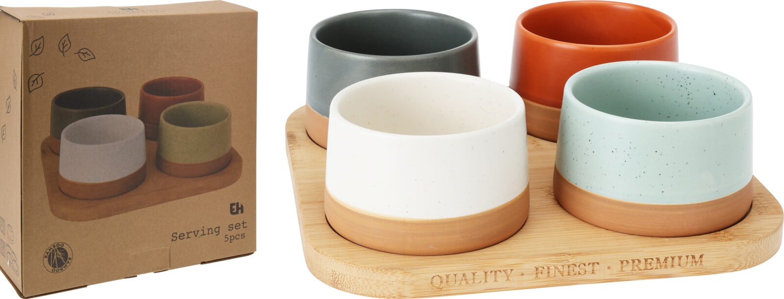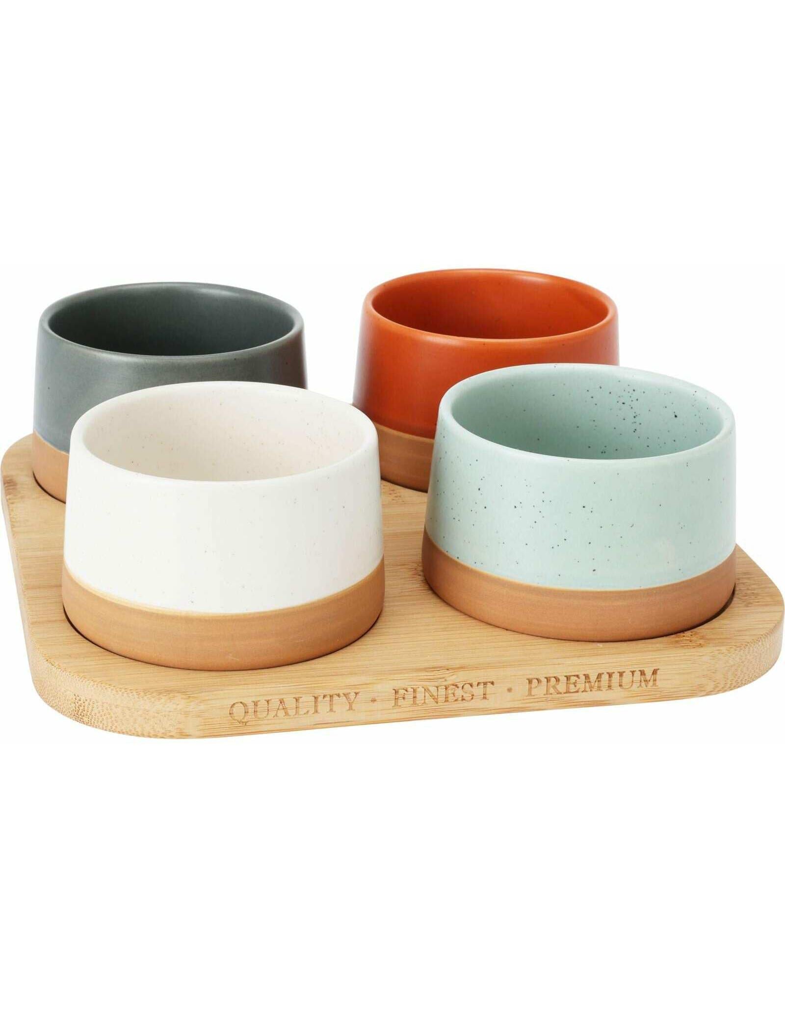 Koopman Dipschalen 4er Set Ton mit Servierbrett (4 x)