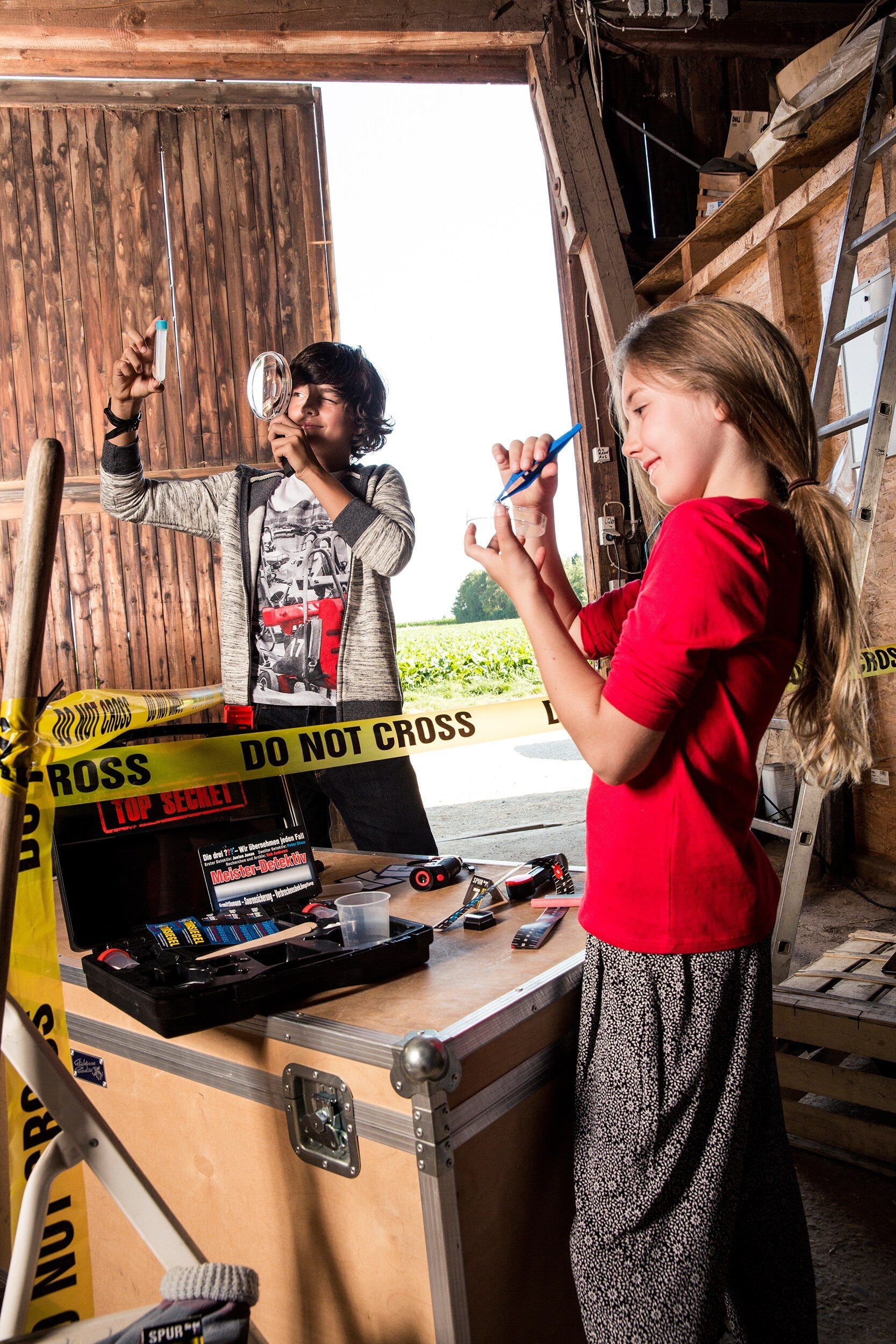 Ausgerüstet wie die Profis. Ab sofort aufregende Fälle lösen und genauso viel erleben wie Justus, Peter und Bob aus Rocky Beach. Den Tatort absichern und Beweise sammeln, Botschaften entschlüsseln und Spuren auswerten, Verdächtige verfolgen und Verstecke aufspüren: In diesem Koffer steckt alles, was Nachwuchs-Agenten für ihre Ermittlungen benötigen, z.B. UV-Lampe, Lupe, Geheimstift, Fingerabdruck-Pulver und -Pinsel und vieles mehr. Viele Tipps, Tricks und Rätsel finden Kinder ab 8 Jahren im umfangreichen Handbuch. Das Detektiv-Set ist ein cooles Geschenk und Mitbringsel für Rollenspiel-Fans. Ran an die Arbeit - es gibt viel zu tun.