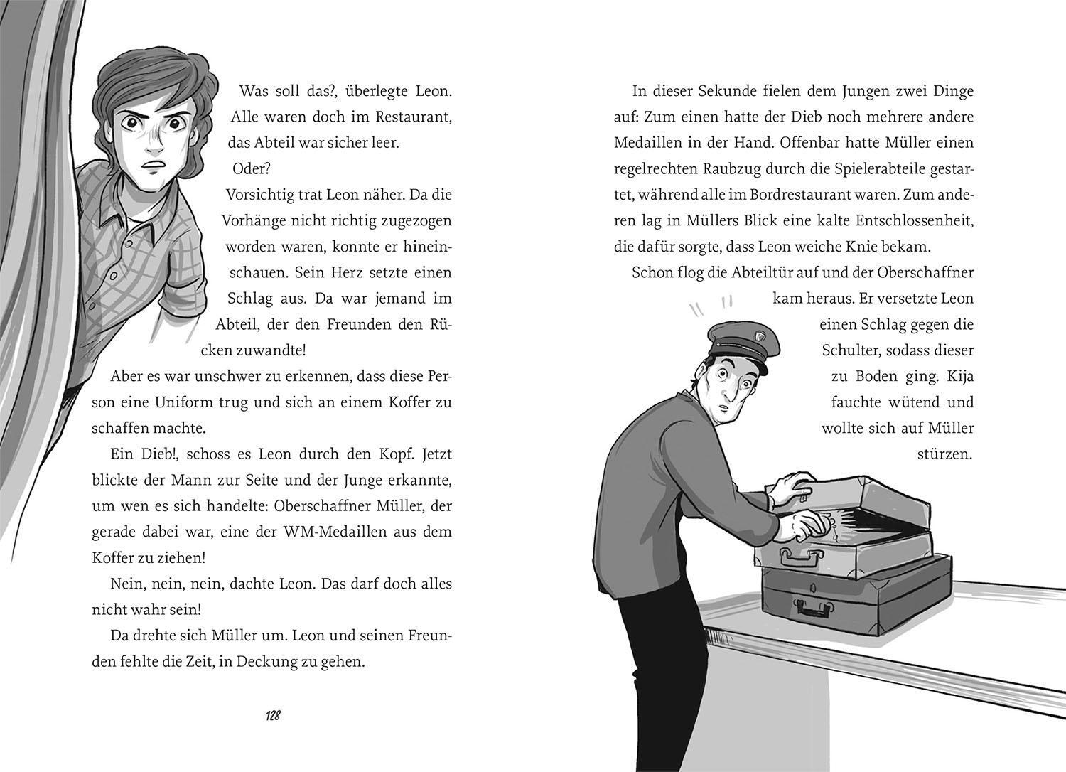 Was geschah damals in Bern? Die Zeitdetektive Kim, Julian, Leon und Katze Kija reisen in die Schweiz, um sich das legendäre Spiel Ungarn-Deutschland einmal genauer anzusehen. Wie konnte die Deutsche Nationalmannschaft 1954 doch noch gewinnen? Die Freunde sind beim Training und beim Finale der Weltmeisterschaft dabei. Dabei fällt ihnen auf, dass sich einige Leute im Stadion sehr verdächtig verhalten. Wer will den Fußballern schaden? Können die Zeitdetektive rechtzeitig eingreifen? Ein historisches Ereignis trifft auf einen fiktiven Kriminalfall. Mit spannenden Sachinfos und Comic-Illustrationen, die Hintergründe und Fakten erläutern.