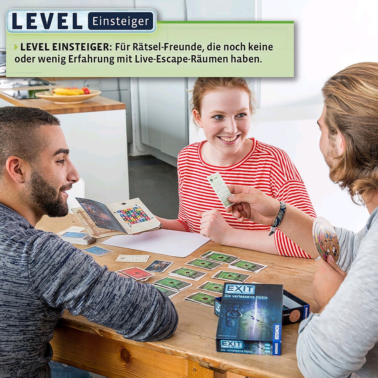 Mystery zum Puzzeln und Rätseln in einem. Aufregende Abenteuer warten auf Einsteiger in diesem kooperativen Escape Room Spiel: Jeder kennt das gruselige Schloss am Waldrand und jeder fürchtet sich davor. Jetzt ist Mut gefragt. Gemeinsam suchen die Spieler einen alten Mann, der spurlos verschwunden ist. Noch am Tag zuvor hatte er auf dem Dorfplatz verkündet, endlich den unheimlichen Schlossbesitzer ausfindig zu machen. Was ist auf der anderen Seite des Waldes geschehen? Die Spieler müssen dem Entführten schnell zur Hilfe eilen. Dafür lesen sie die Abenteuergeschichte und setzen nacheinander vier Puzzles zusammen, die sie an einsame Orte und in schaurige Räume führen. Sie bestehen gemeinsam Gefahren und lösen clevere und überraschende Rätsel. Bei diesem Escape Room Spiel hilft das ganze Team mit.