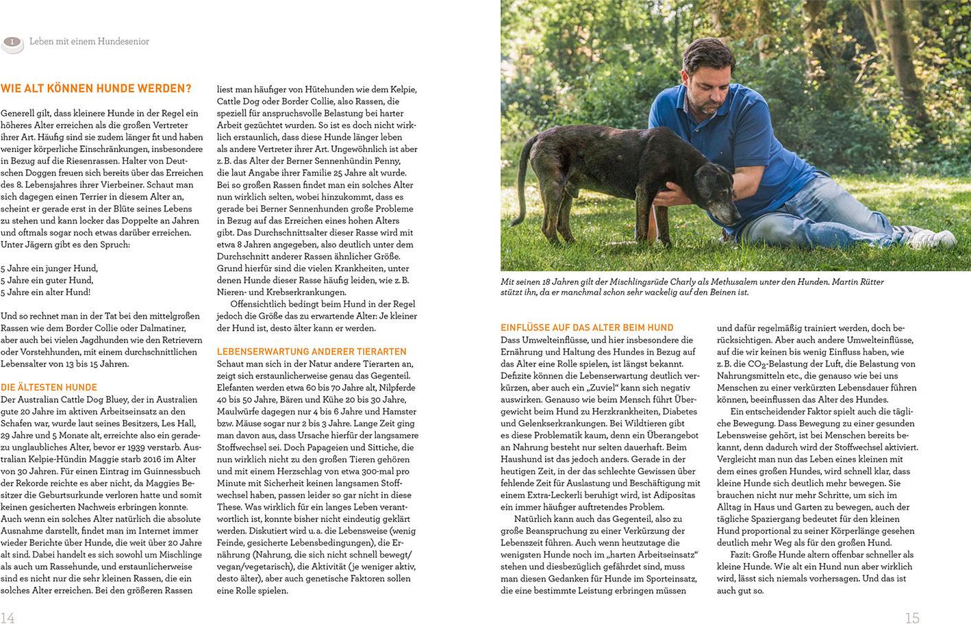 Auch Hunde werden immer älter. Hundesenioren sind langsamer, die Spazierwege werden kürzer, doch die Bindung zwischen Mensch und Hund wird nochmals intensiver. Graue Schnauzen sind ungern allein, brauchen ihren menschlichen Partner und viel Zuwendung. Martin Rütter und Andrea Buisman zeigen, an was alte Hunde besondere Freude haben, wie man sie möglichst lange fit hält und worauf man Rücksicht nehmen muss. Auch Alterskrankheiten und das Thema Abschied werden besprochen. Zudem gibt es viele Erfahrungsberichte von Hundehaltern über ihre vierbeinigen Senioren. Der umfassende Ratgeber für eine ganz besondere Zeit der Innigkeit.