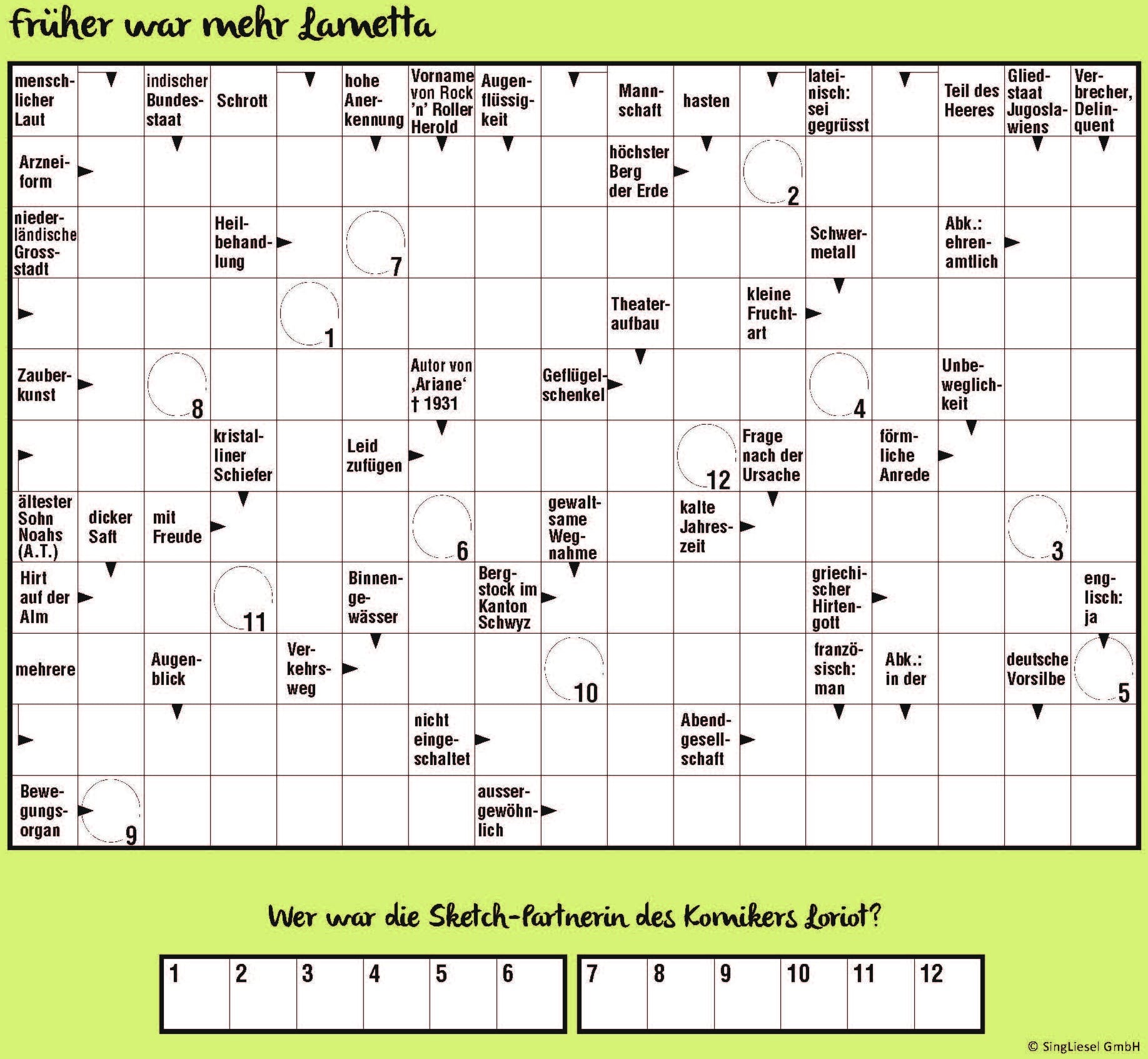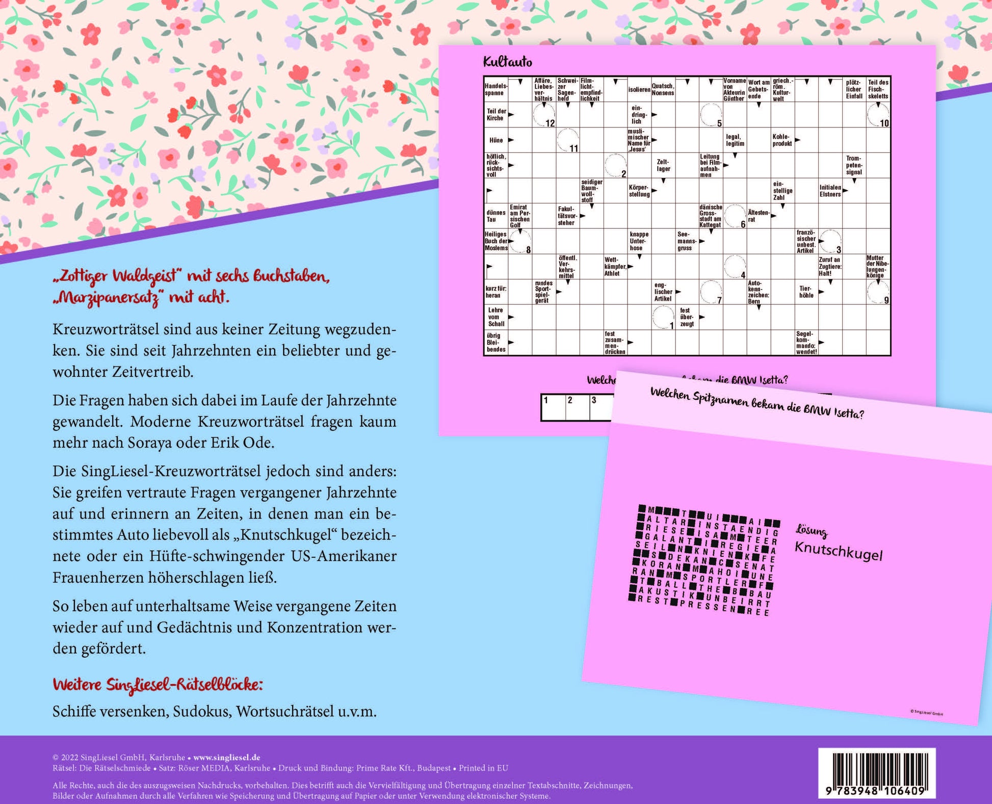 Kreuzworträtsel sind aus keiner Zeitung wegzudenken. Sie sind seit Jahrzehnten ein beliebter und gewohnter Zeitvertreib.Die Fragen haben sich dabei im Laufe der Jahrzehnte gewandelt. Moderne Kreuzworträtsel fragen kaum mehr nach Soraya oder Erik Ode.Die SingLiesel-Kreuzworträtsel jedoch sind anders: Sie greifen vertraute Fragen vergangener Jahrzehnte auf und erinnern an Zeiten, in denen man ein bestimmtes Auto liebevoll als "Knutschkugel" bezeichnete oder ein Hüfte-schwingender US-Amerikaner Frauenherzen höherschlagen liess.So leben auf unterhaltsame Weise vergangene Zeiten wieder auf und Gedächtnis und Konzentration werden gefördert.Die SingLiesel-Rätselblöcke für Senioren sind- im grosszügigen XXL-Format gut auszufüllen- in grosser Schrift leicht lesbar- knifflig und doch schnell zu lösen für ein garantiertes Erfolgserlebnis- von Experten für Senioren ausgewählt und getestet.Weitere SingLiesel-Rätselblöcke: Schiffe versenken, Sudoku, Wortsuchrätsel.