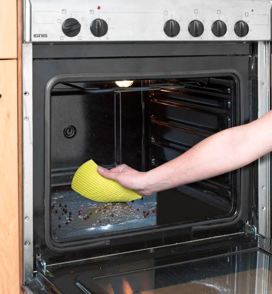 - Einsprühen und im Backofen auf ca. 50 °C erwärmen, nach ca. 60 min mit Schwamm Reste entfernen