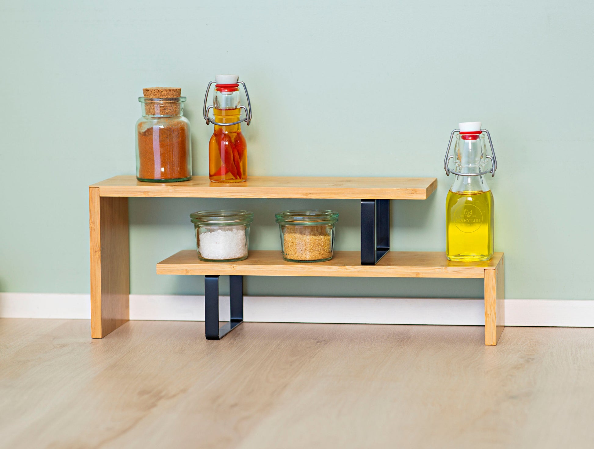 Wandelbarer Aufbewahrungshelfer: die Küchenablage aus Bambus, 2-stufig