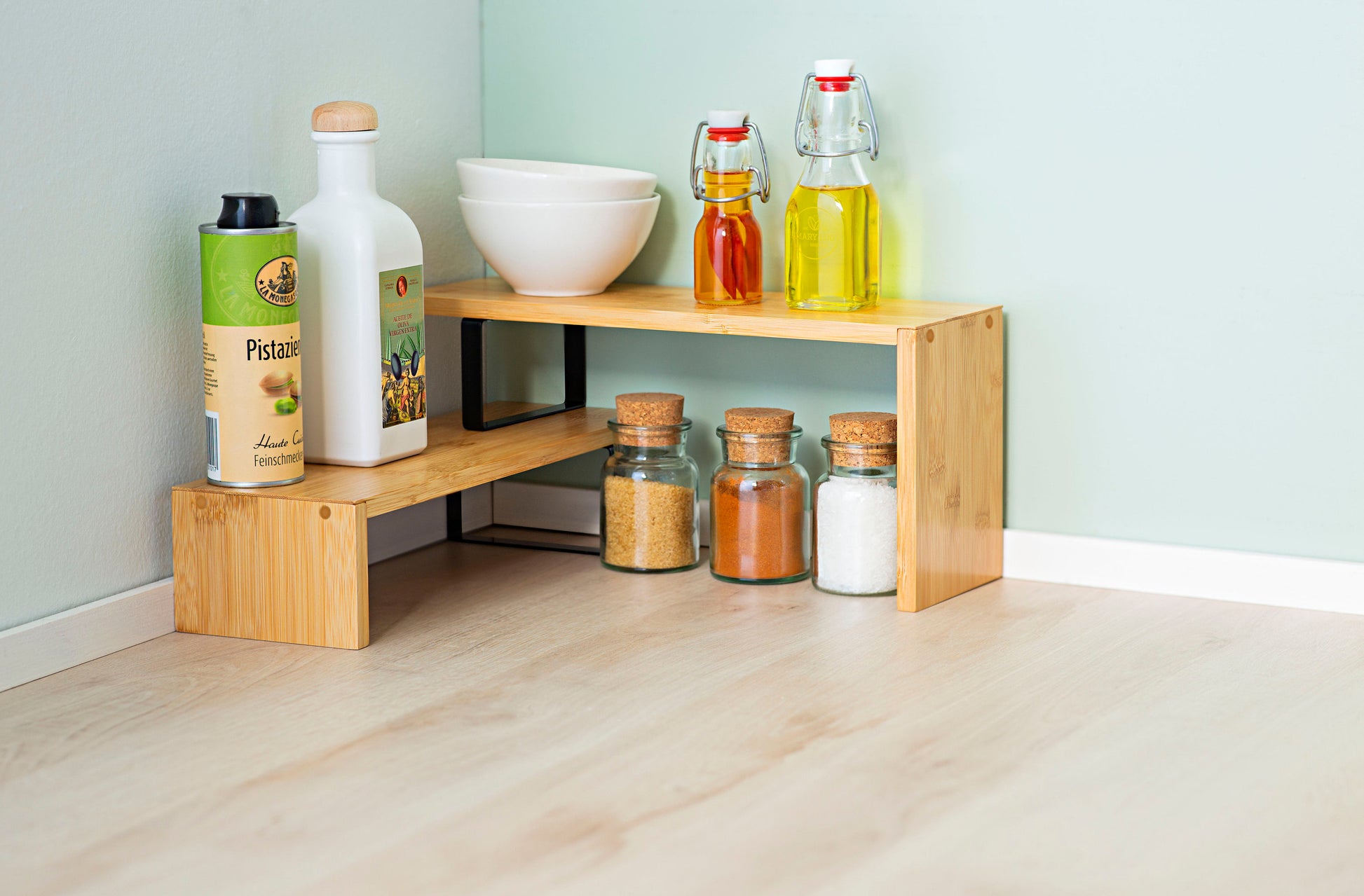 Gleich hier online bestellen: die dekorative und praktische Küchenablage aus Bambus, 2-stufig.