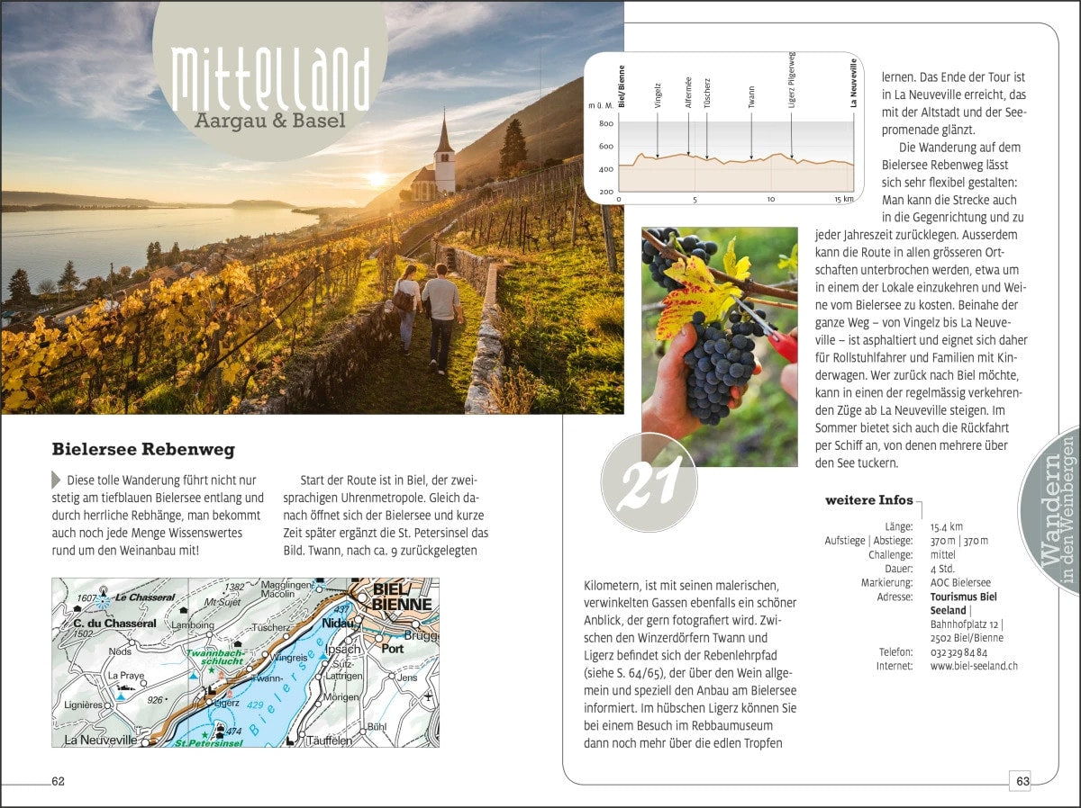 Im Kümmerly+Frey Freizeitführer Erlebnis Schweiz - Wandern in den Weinbergen finden Sie passende Tourenvorschläge mit Tipps und Empfehlungen für Ihr nächstes Wanderabenteuer. Der Band zeigt 53 inspirierende Touren in der gesamten Schweiz und verknüpft die Bewegung in prächtiger Natur mit dem Erlebnis der uralten Kultur des Rebbaus. Weingenuss nicht ausgeschlossen ...!