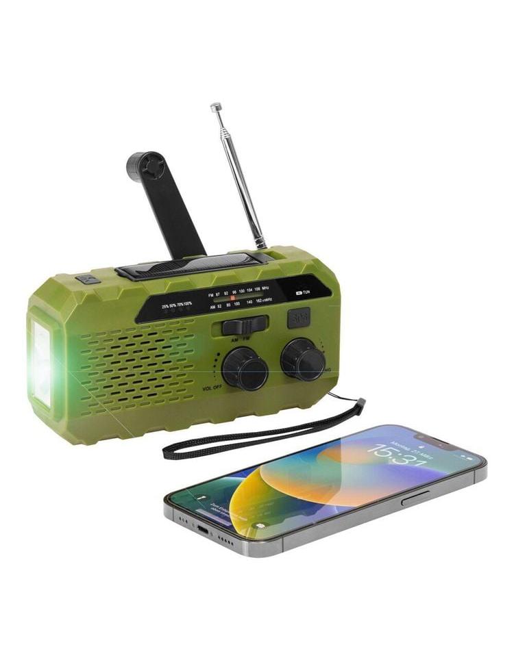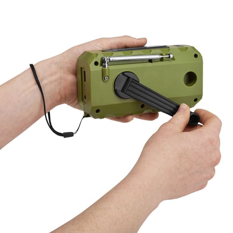 AM/FM Radio Taschenlampe Akku & Kurbel Ganz einfach überall besten Sound genießen mit dem AM/FM Kurbelradio! Dank Solarladefunktion und integrierter Kurbel können Sie das Radio immer und überall aufladen. Einfach kurbeln und Sie haben wieder Saft . Nehmen Sie Ihr Radio mit auf die Radtour oder den Campingausflug. Besonders praktisch: Das Kurbelradio verfügt über einen USB-Anschluss, über den Sie Ihr Smartphone aufladen können. Mit 2.000 mAH Akku USB-Anschluss um das Smartphone aufzuladen Mit LED Taschenlampe SOS-Funktion Maße: ca.15 x 5 x 8 cm. Bestellen Sie das Kurbelradio Multifunktion am besten gleich hier online.