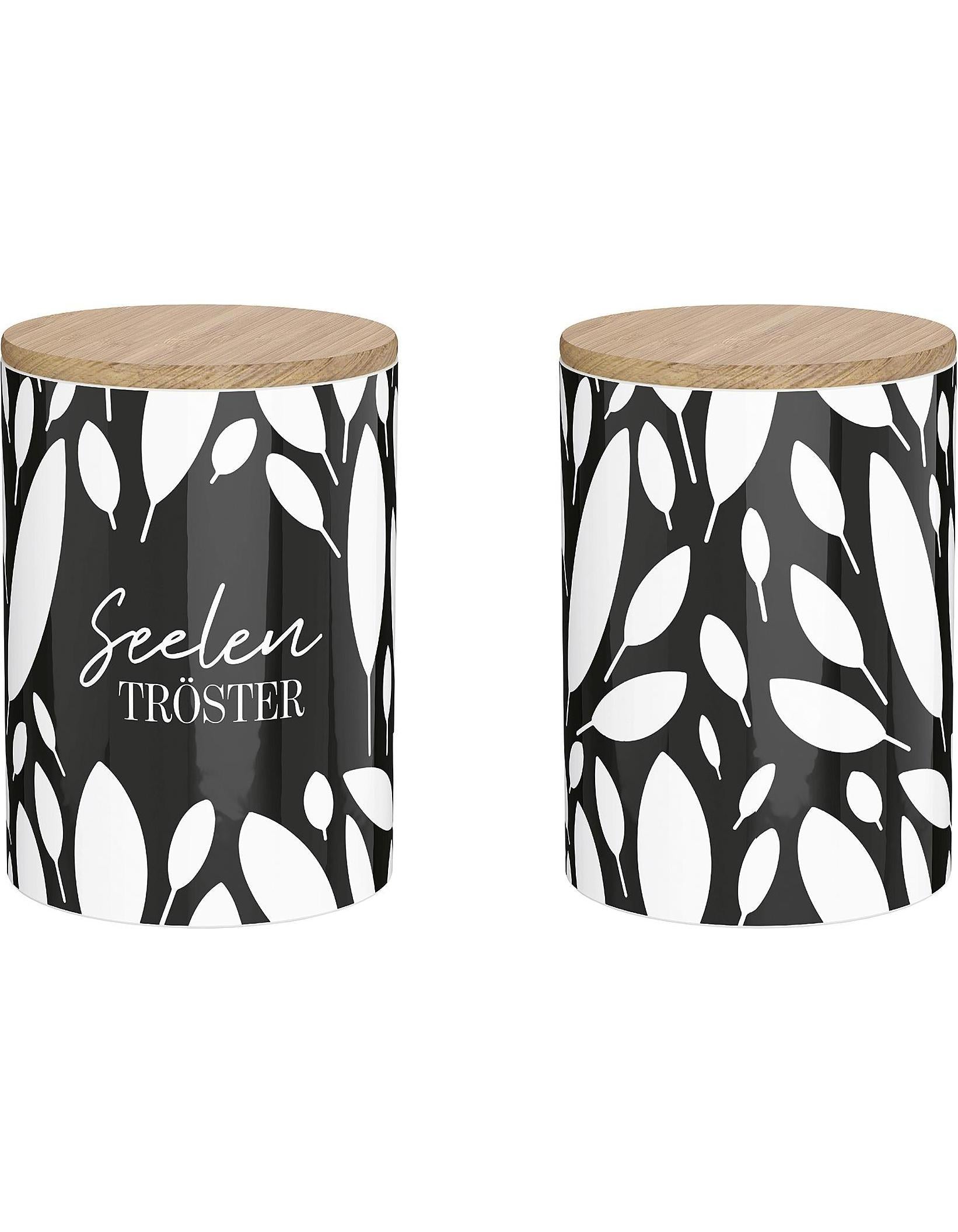Wer kennt es nicht lauter angebrochene Tüten in der Küche?? Vorratsdosen müssen her. Aber nur langweilige durchsichtige?? Das muss nicht sein. Mit dieser Vorratsdose hast du einen Blickfang. Ob in der Küche für Mehl, Zucker, Nudeln oder im Wohnzimmer mit Naschereien gefüllt. Fassungsvermögen: 1 L. Höhe: 16 cm, Durchmesser: 11 cm. Motiv: Seelentröster. Farbe: schwarz/weiß.