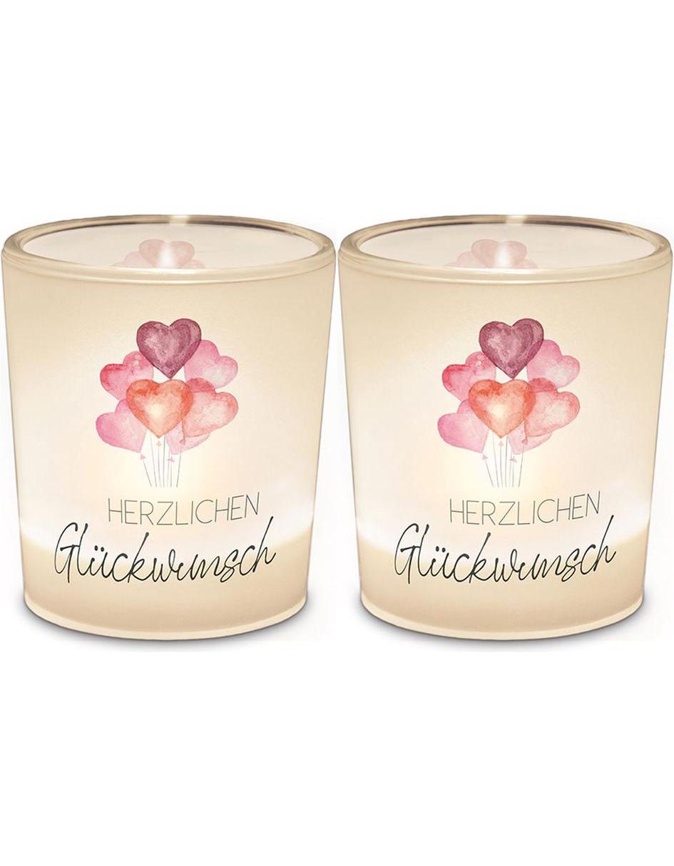 La Vida Windlicht mit Teelicht 6x6cm Herzlichen Glückwunsch