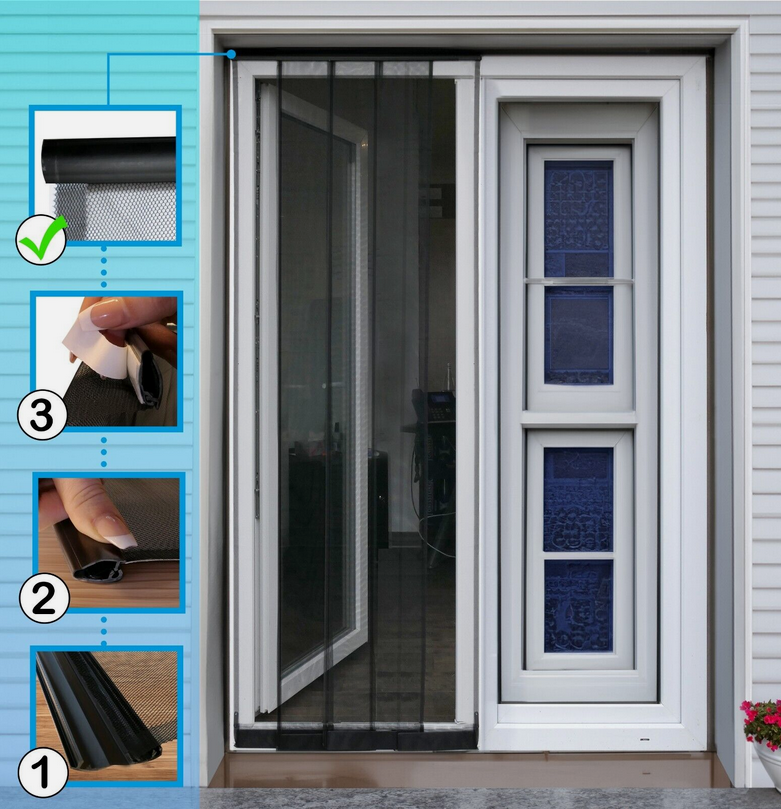 Mit unserem hochwertigen Lamellenvorhang bieten Sie unerwünschten Insekten, Moskitos und Stechmücken keine Chance! Diese schnelle und effektive Lösung im Bereich Insektenschutz besteht aus 4 robusten Lamellen, die sich nach jedem Durchgang automatisch wieder schließen. So bleibt Ihr Zuhause frei von Insekten, während Sie mühelos hindurchgehen können. Ideal für Türen und Durchgänge, sorgt unser Lamellenvorhang für eine angenehme und sichere Umgebung.