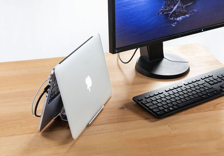 Universalhalter (bis 42 mm Geräte) Sicherer Halt für Laptop plus Ablage für Tablet oder Smartphone Perfekt für Schreibtisch und Home Office Aus Kunststoff in Metallic-Optik Praktisch für Laptop, Tablet und Smartphone. Platzsparende Einstellmöglichkeit für Laptops verschiedener Größen. Der Schwerkraft-Mechanismus umschließt den Laptop beim Einstellen automatisch für sicheren Stand. Gummierte Innenseiten verhindern Kratzer. Seitliche Aufstellhalterungen für Handy oder Tablet, z. B. für Videotelefonie & Streaming. Maße: 12 x 12,7 x 8,8, cm. Bestellen Sie den praktischen Laptop Ständer Vertikal 3 in 1 gleich online.