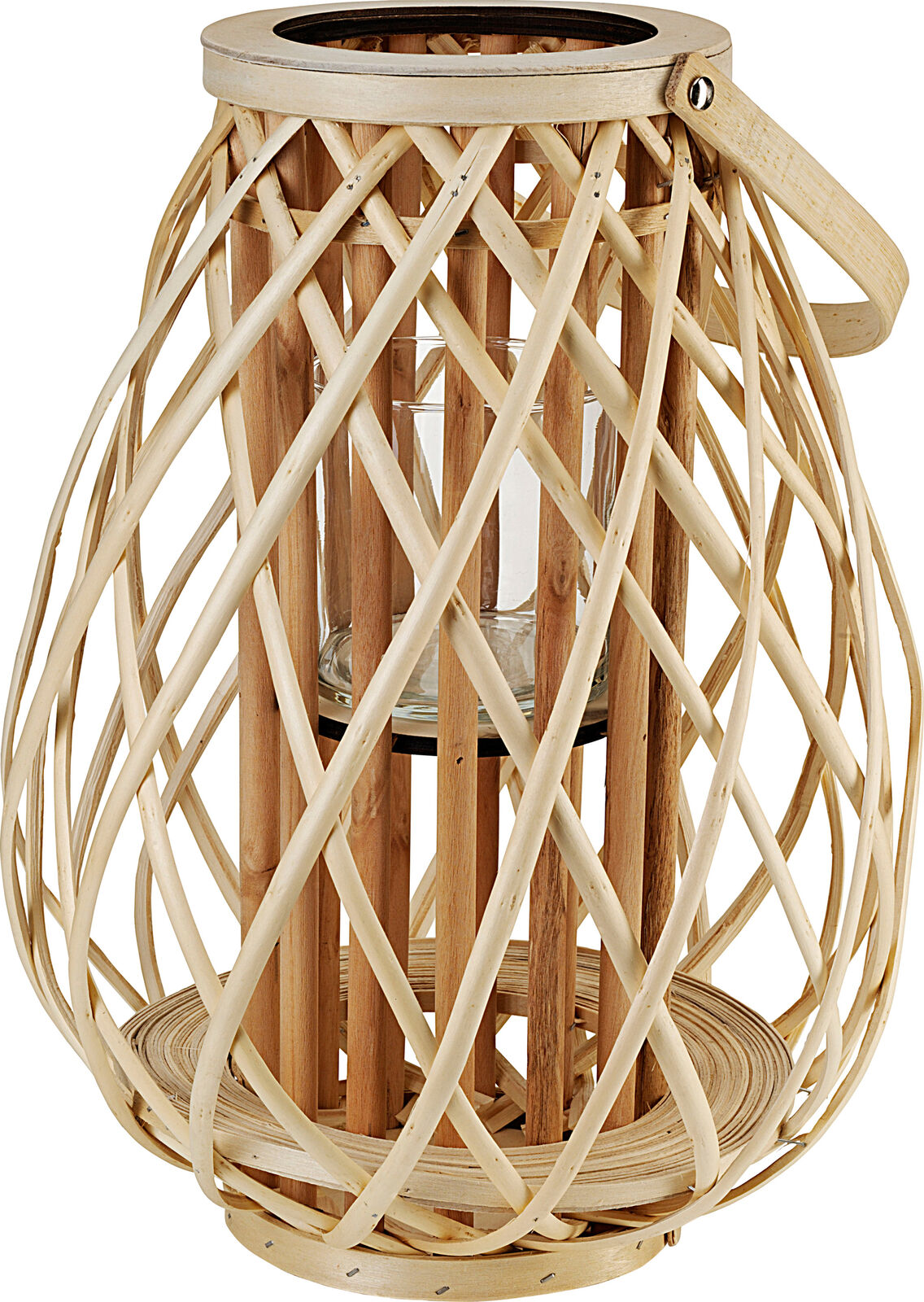 Laterne Braid aus Holz und Rattan Dekoration Glas Einsatz 38 cm Ø 8,5 cm braun
