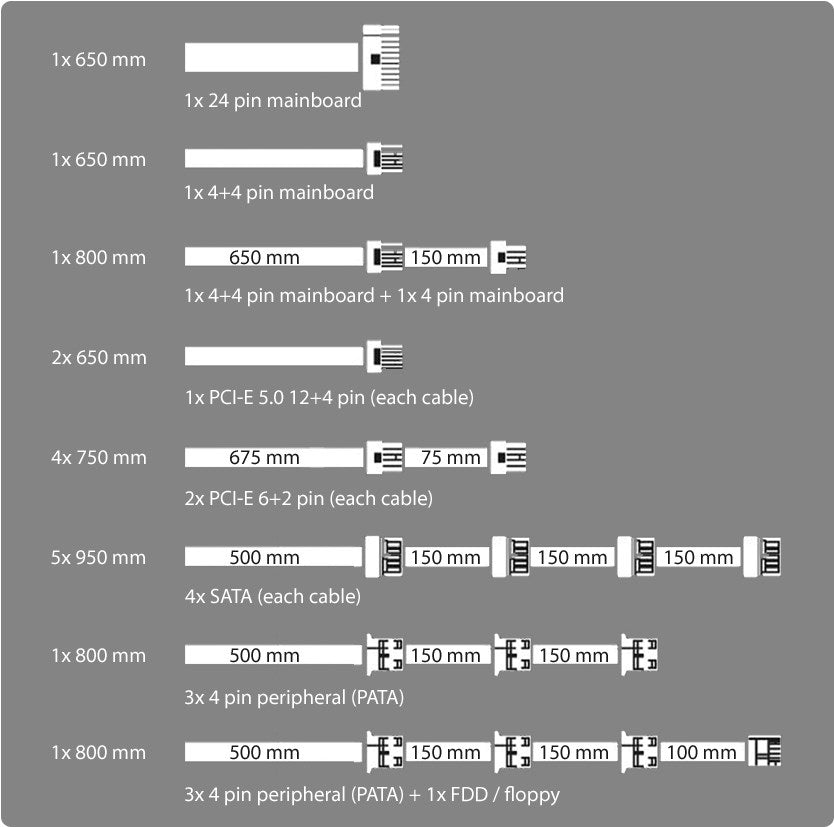 Durch das vollmodulare Kabelmanagement bietet es einen sehr hohen Komfort beim Build oder Upgrade ihrer Systeme. Das Netzteil überzeugt darüber hinaus mit einer Effizienz von bis zu 92 Prozent und bietet mit bis zu zehn PCI-Express-Anschlüssen (2x PCIe 5.0 12+4-Pin / 8x PCIe 6+2-Pin) die perfekte Lösung in der Oberklasse!