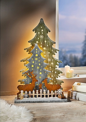 Stellen Sie diese LED-Dekoration „Winterwald” einfach auf den Boden, um einen bezaubernden Look zu erzielen. Am Fenster, auf der Kommode oder auf dem Kamin macht diese Lichtdekoration ebenfalls eine gute Figur – jedes Jahr im Winter.