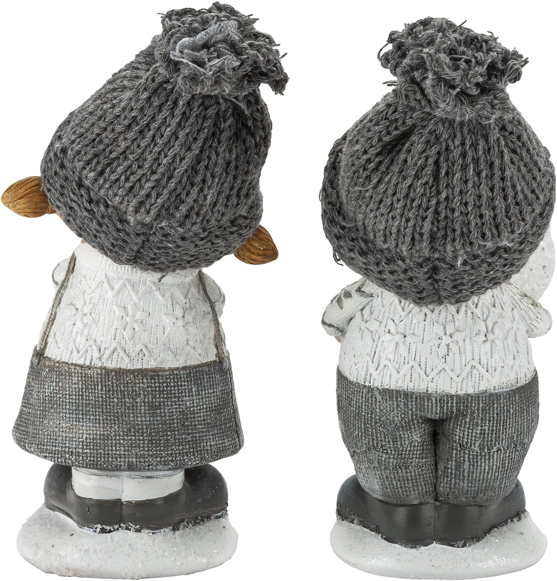 Lea und Franz sind zwei bezaubernde Deko-Figuren. Sie sind rundherum sorgfältig gearbeitet, mit vielen entzückenden Details. So kann man jede Masche ihrer Norwegerpullis gut erkennen. Auch Rock und Hose zeigen sich in einer aufwendigen Struktur. Besonders hübsch sind die Bommelmützen, die in echtem Strick gearbeitet sind!