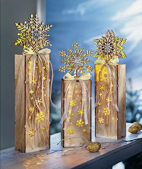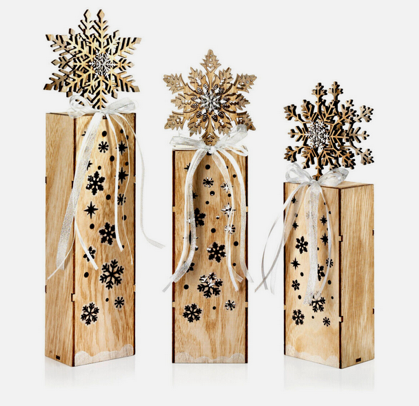 3er-Set aus Holz, vorne dezent verziert mit Glitter, Ausstanzungen auf Vorder- und Rückseite