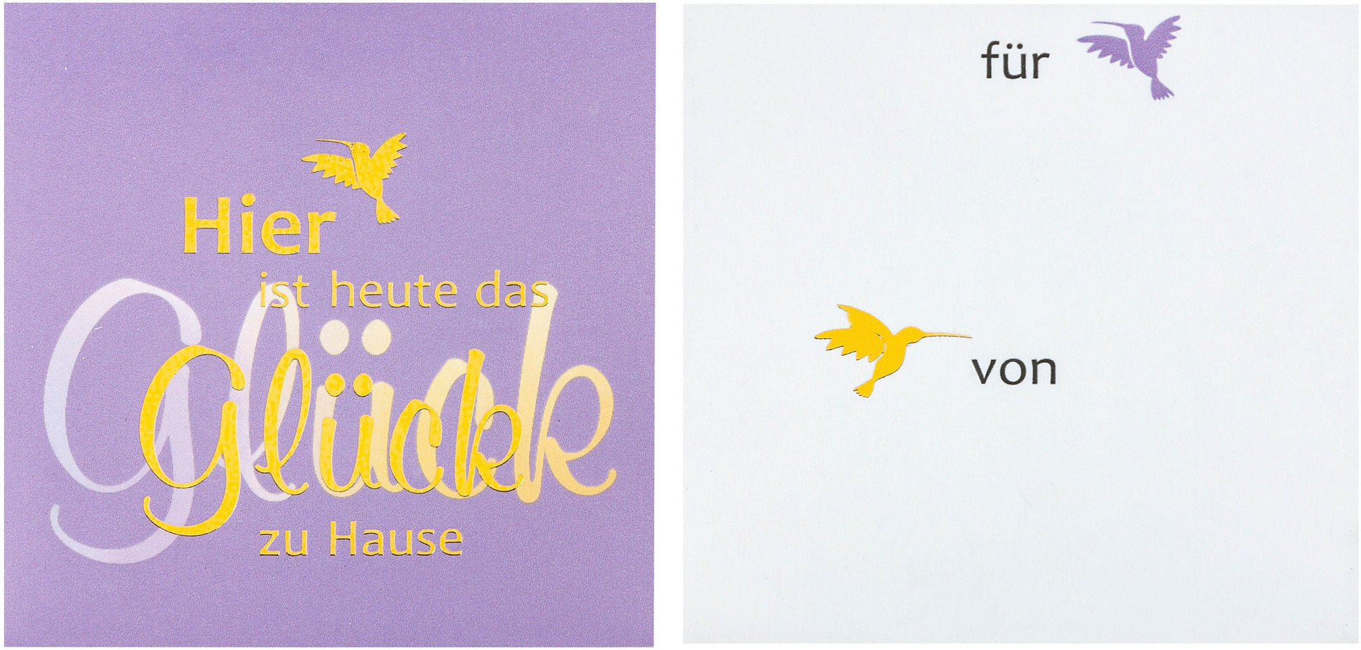 • mit Motto-Spruch „Hier ist heute das Glück zu Hause“