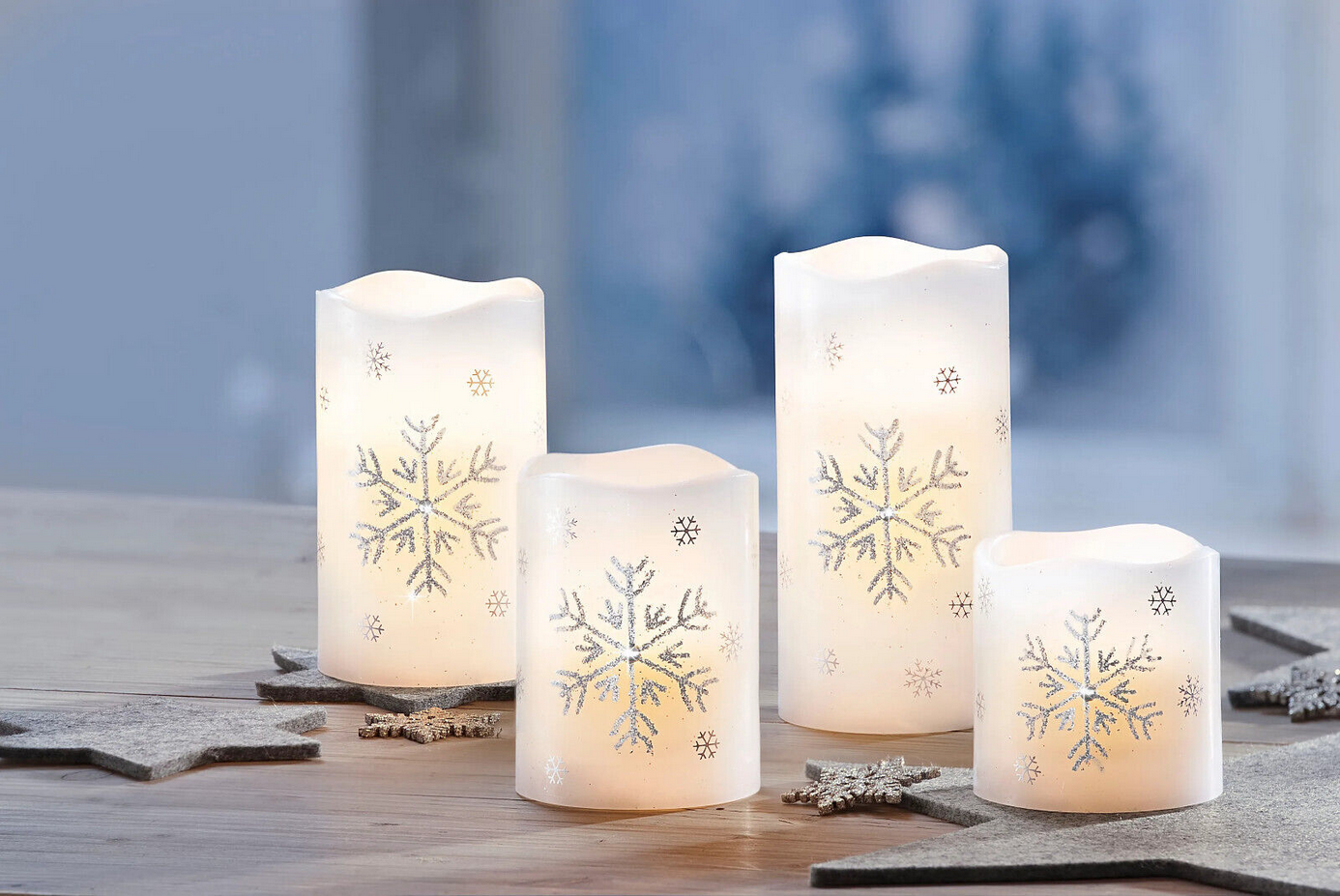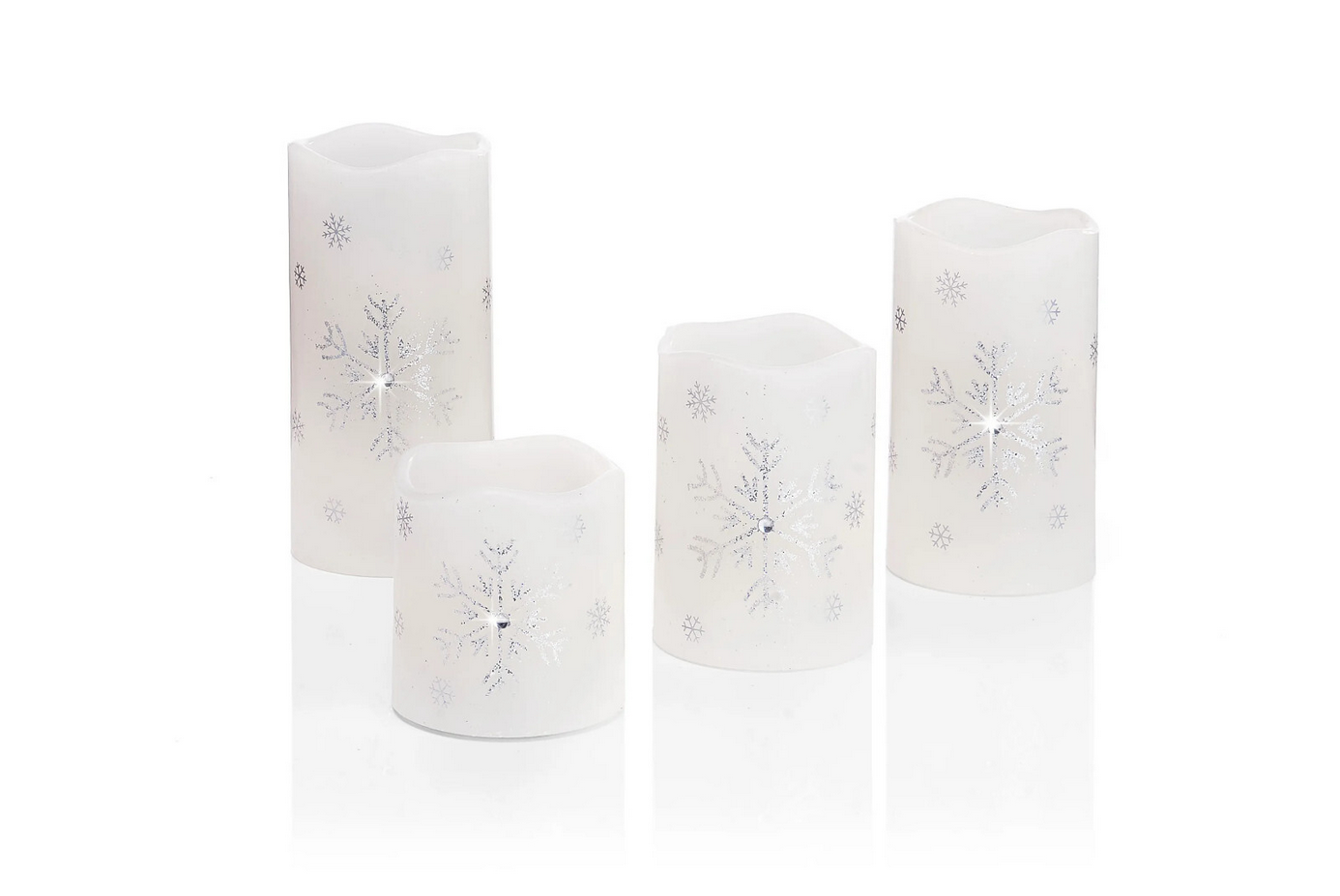 Glitzernd schön und stimmungsvoll: LED-Echtwachskerzen „Snowflake“ 4er-Set