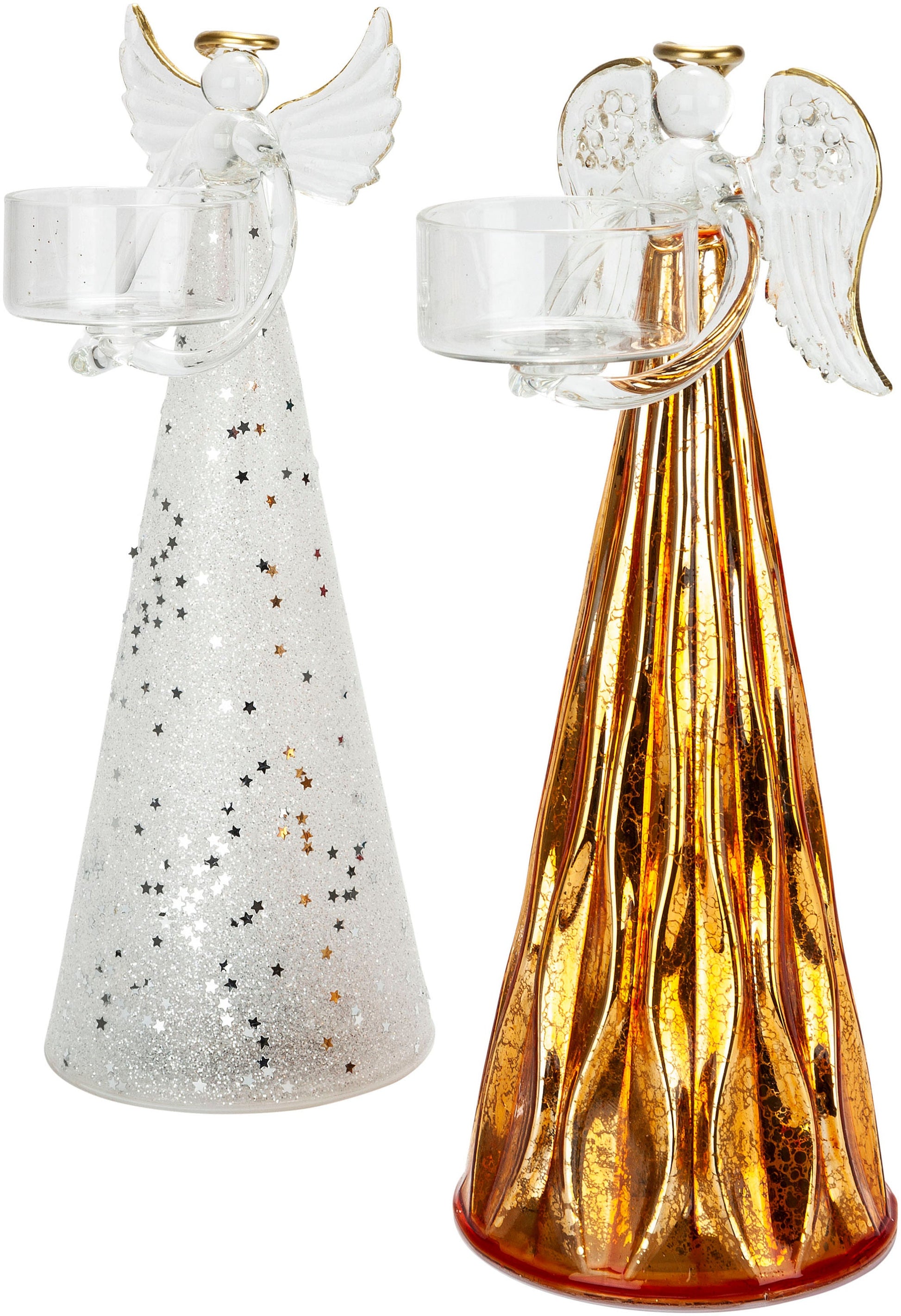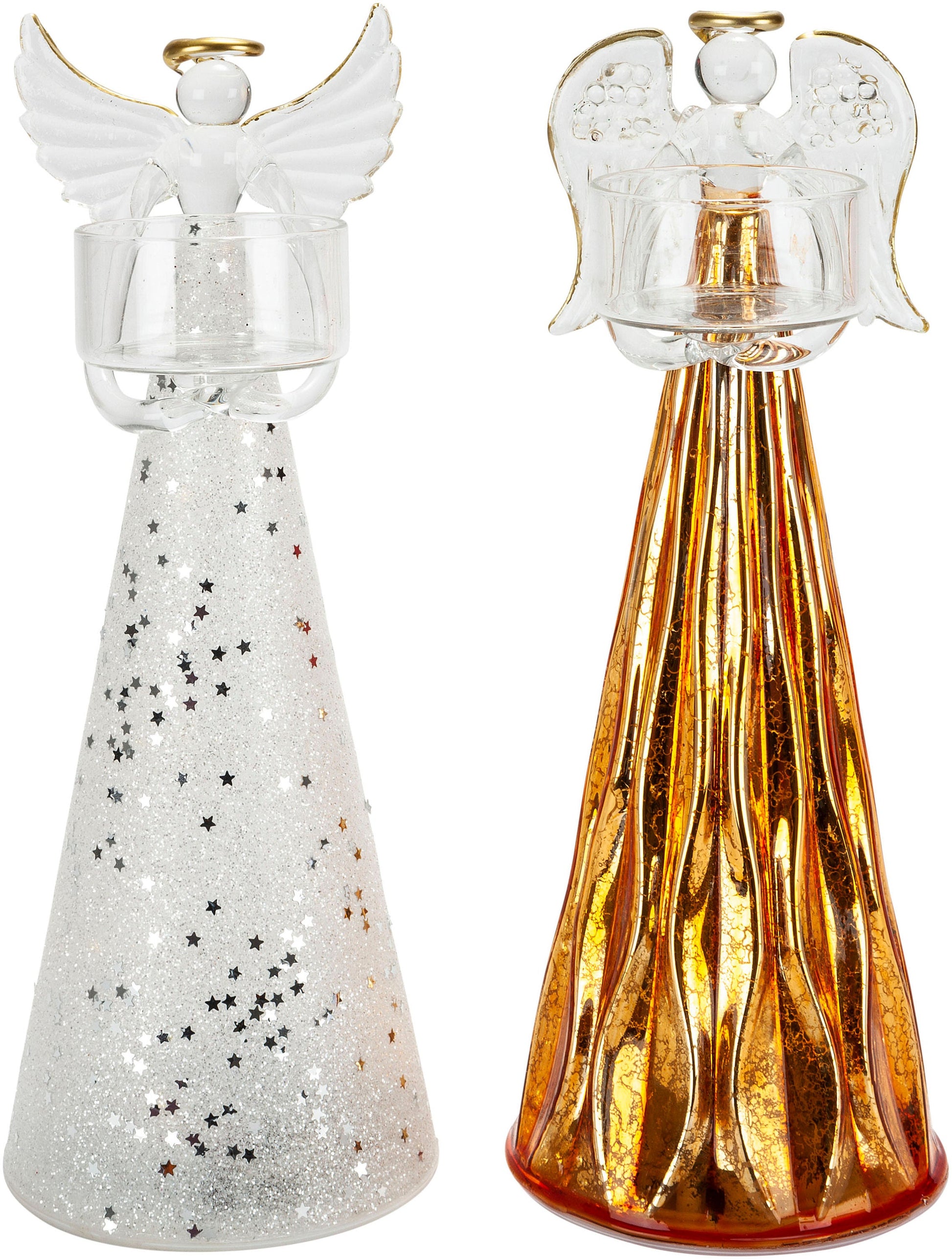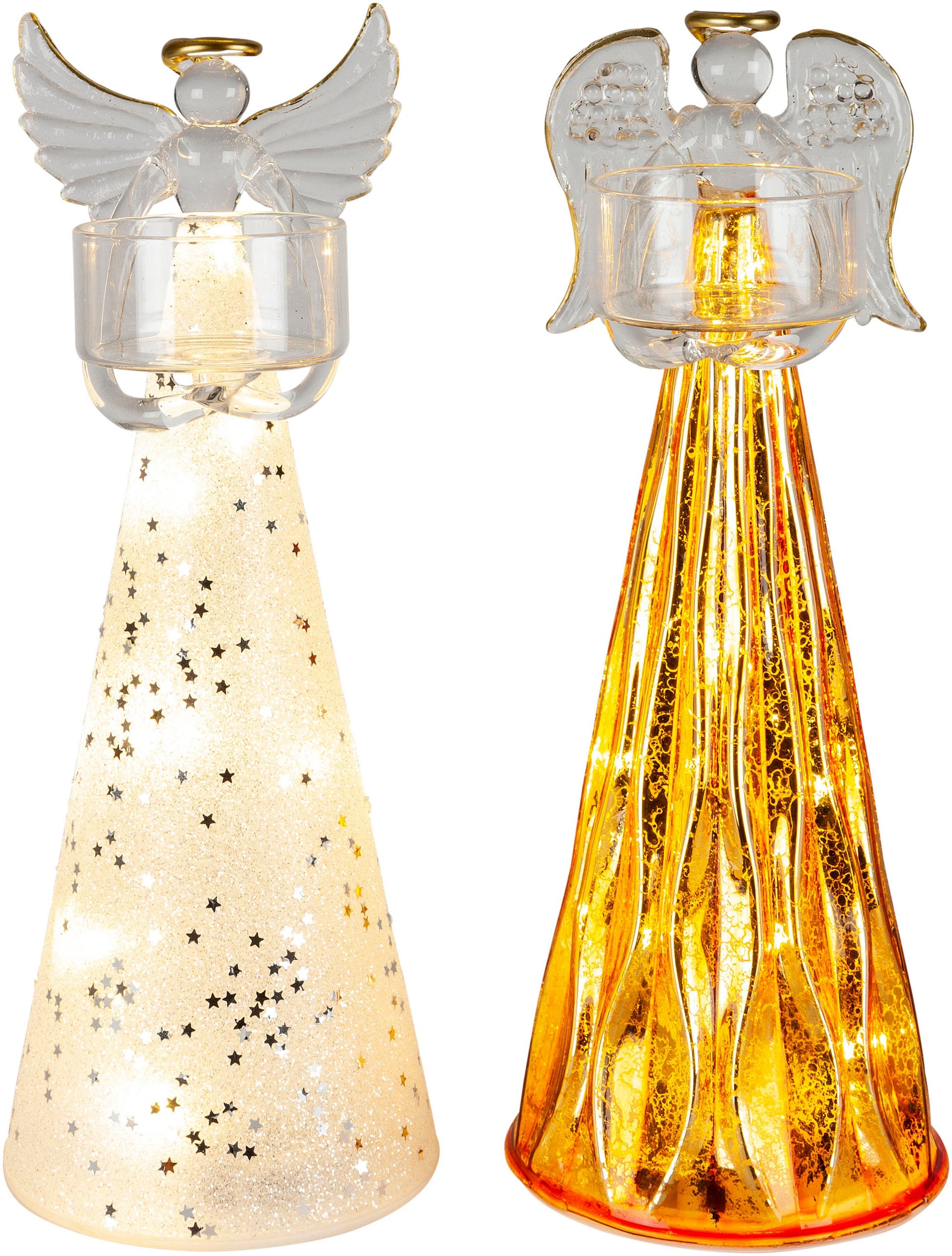 - Festliche Glas-Engel mit Teelichthalter und Beleuchtung
