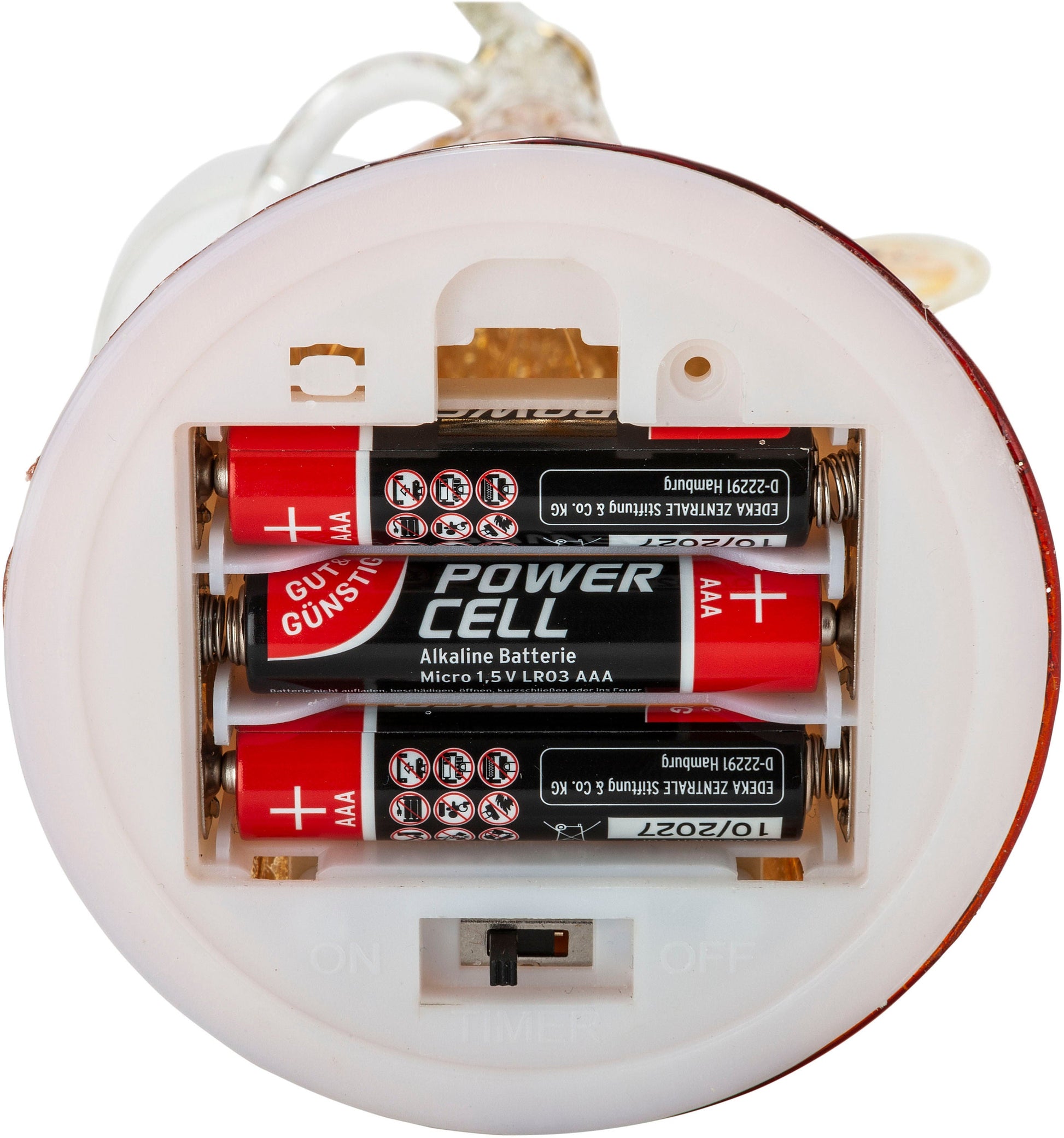 Wenn Sie den Timer aktivieren, schaltet sich die Beleuchtung nach 6 Stunden automatisch aus und 18 Stunden später wieder für 6 Stunden ein – tagein, tagaus leuchtet jeder Engel also zur gleichen Zeit, bis der Timer wieder neu betätigt wird.