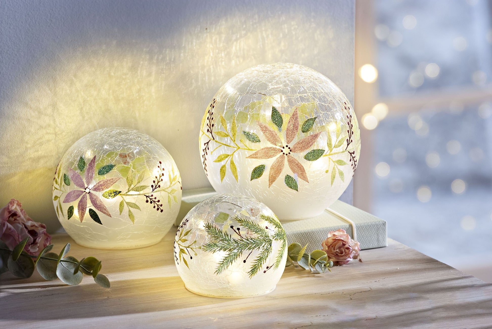 LED-Glaskugeln "Winterflowers", 3er-Set