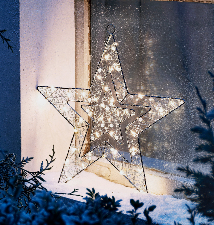 Masse: Ø Stern 35 cm; Zuleitung zum Batteriefach 100 cm.