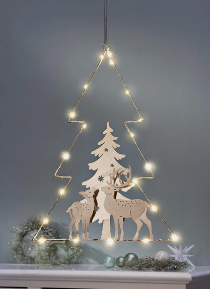 Rahmen in Tannen-Form mit 21 warmweißen LEDs