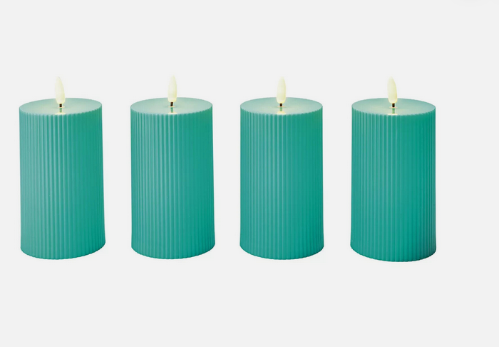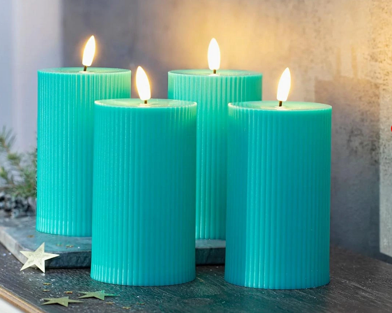 LED Kerzen Striscia 4er Set Flimmereffekt Dekoration 12,5cm Petrolgrün