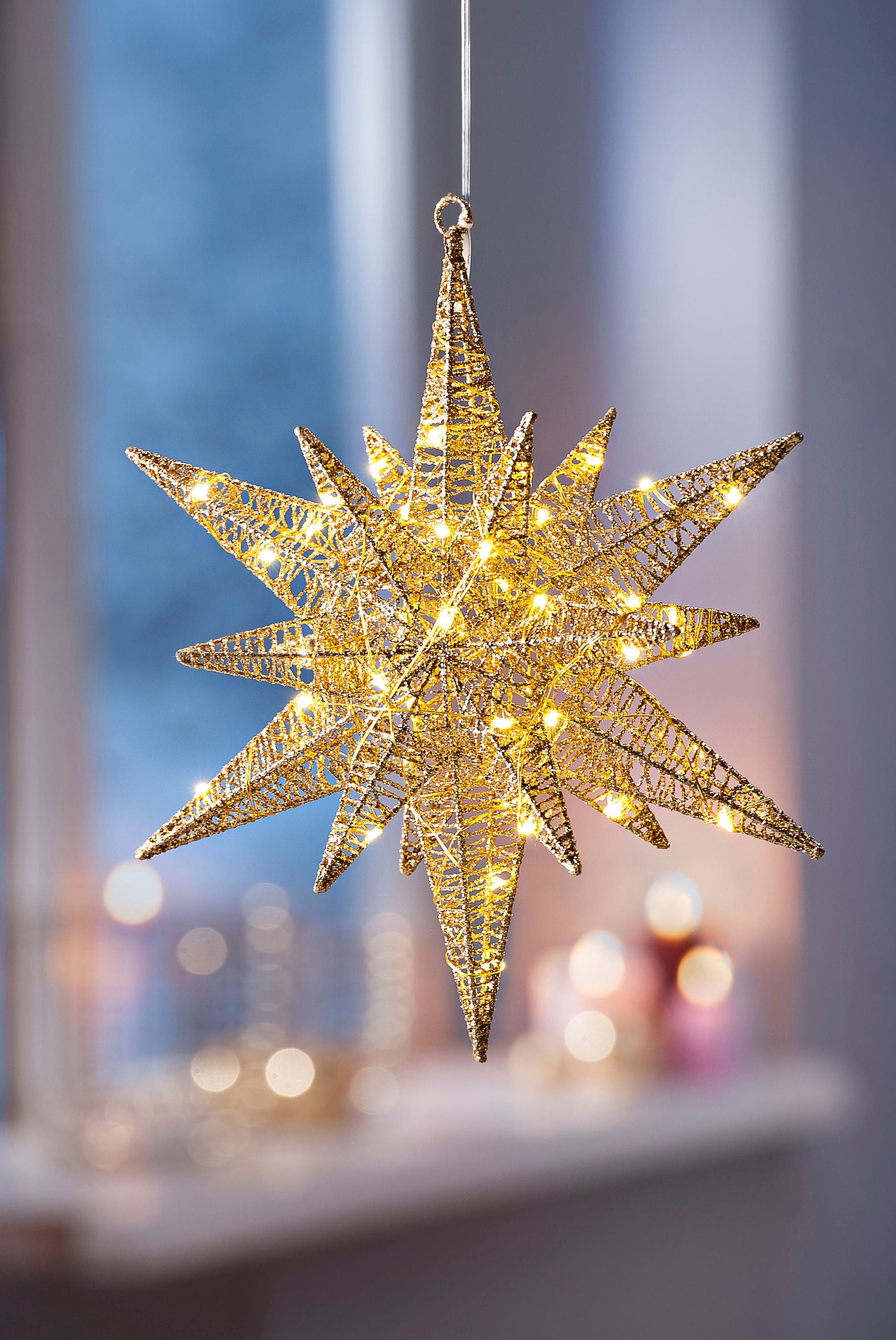 Mit seinen 18 Zacken und 30 cm Höhe ist dieser Stern ein wahres Prachtexemplar! Dazu lassen ganze 50 LEDs sein Glitzerfinish herrlich funkeln und bezaubern mit goldenem Stimmungslicht.