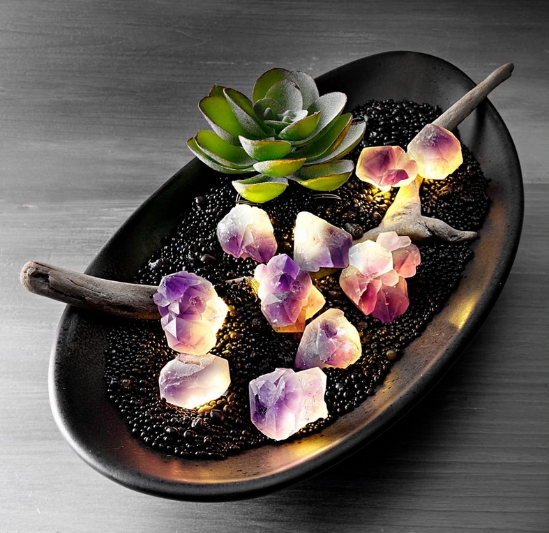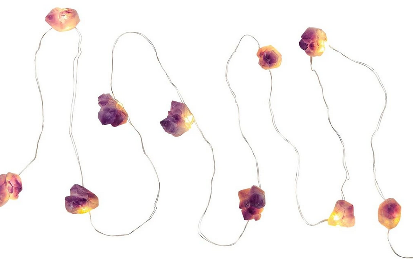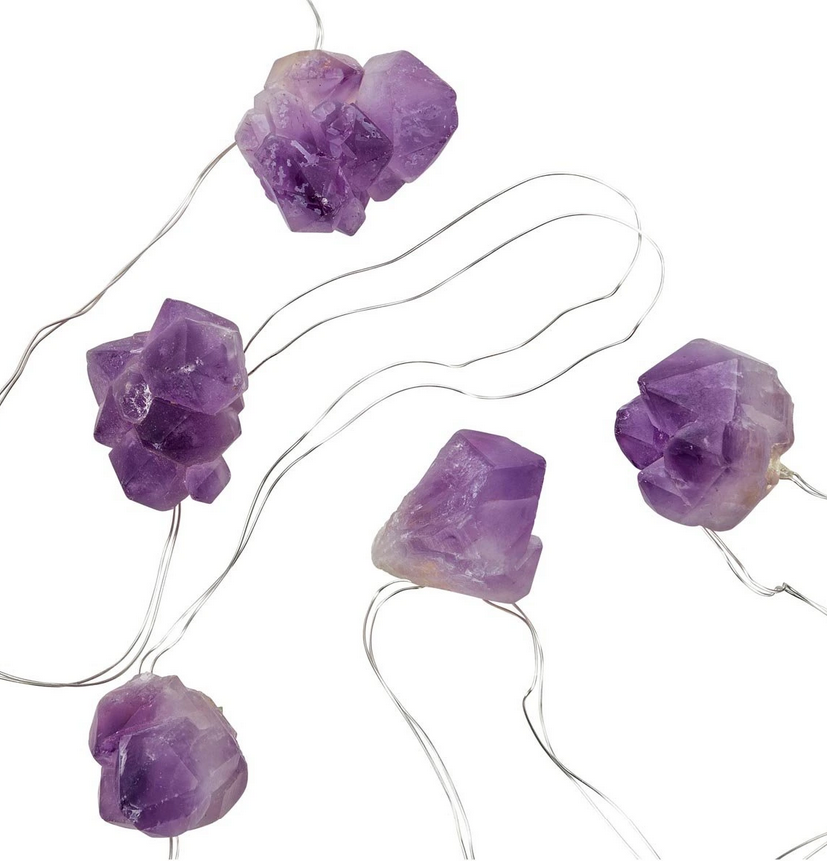 Die fabelhaften LED-Lichter, die in wunderschönem farbigen Quarz eingeschlossen sind, bilden eine 135 cm lange Lichterkette. Es sind 10 Stück, die tagsüber wunderschön funkeln und nach Einbruch der Dunkelheit dank der LEDs im Inneren buchstäblich leuchten.