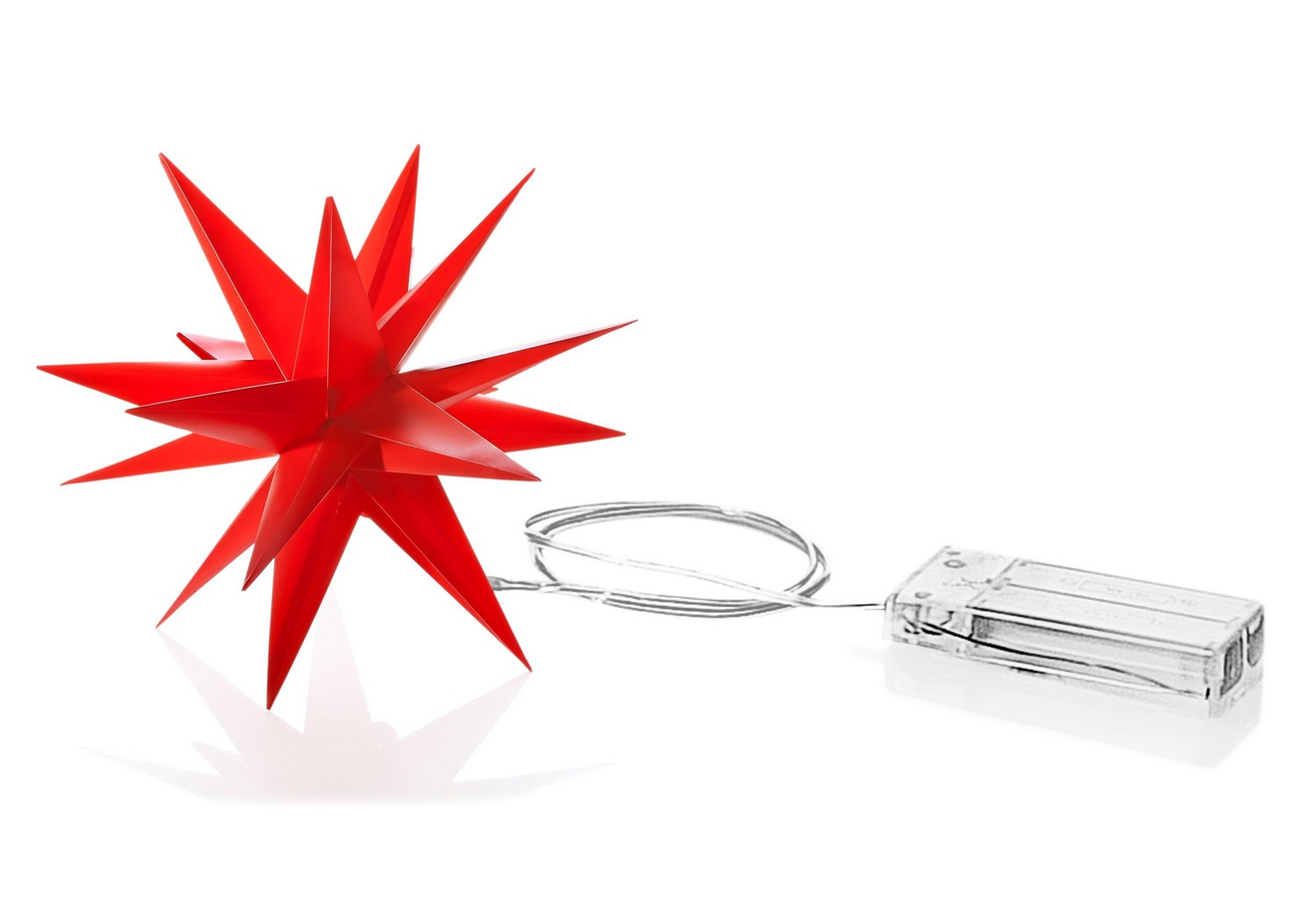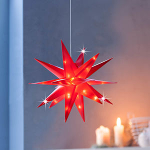 Himmlisch schöner 12-zackiger Stern mit stimmungsvoller Beleuchtung durch warmweisse LEDs und einem 6-Stunden-Timer.