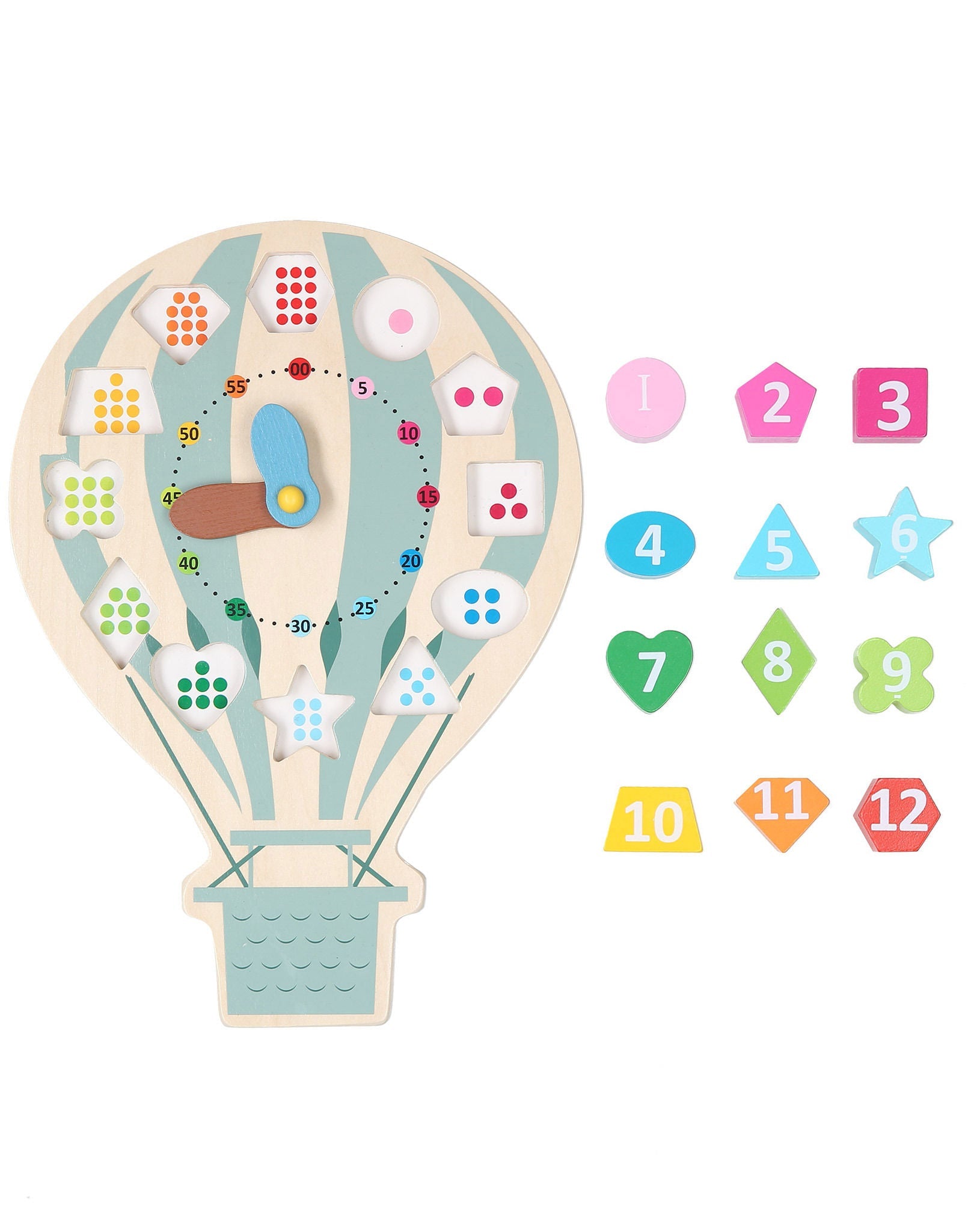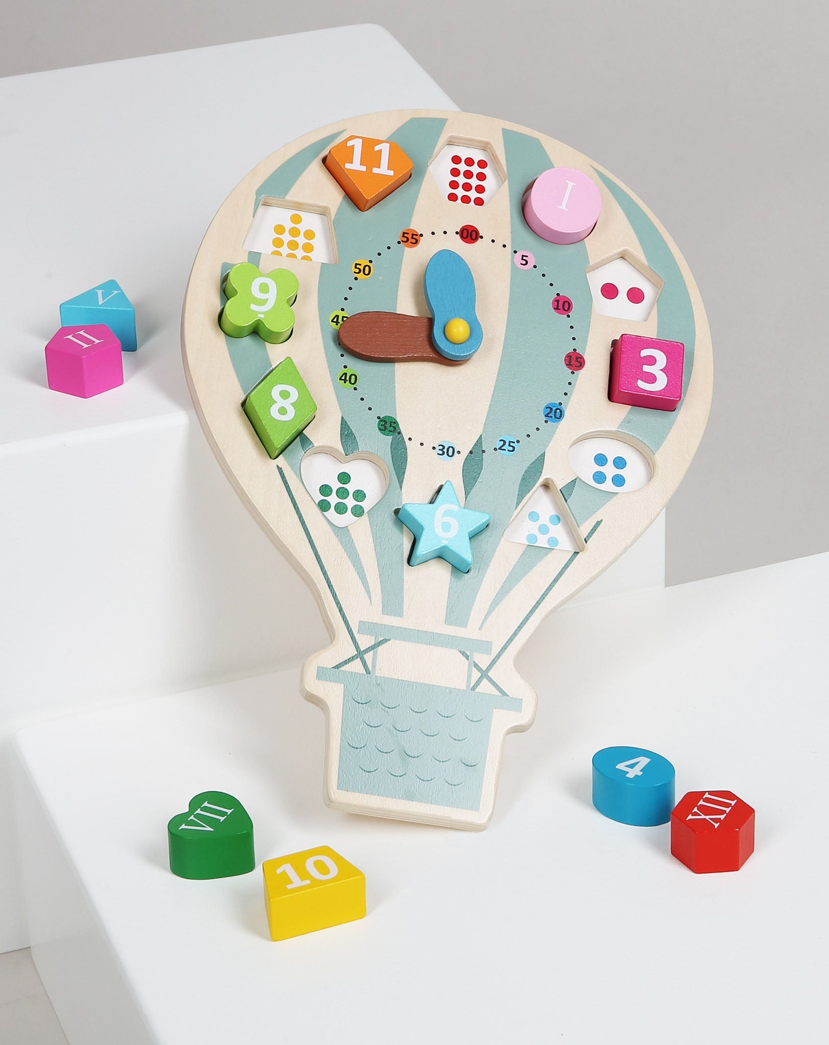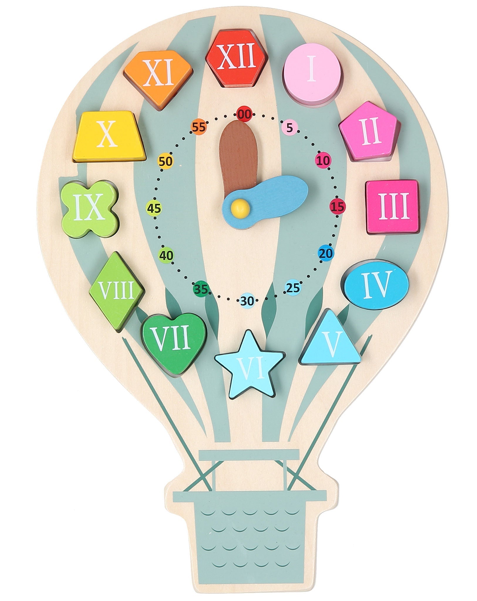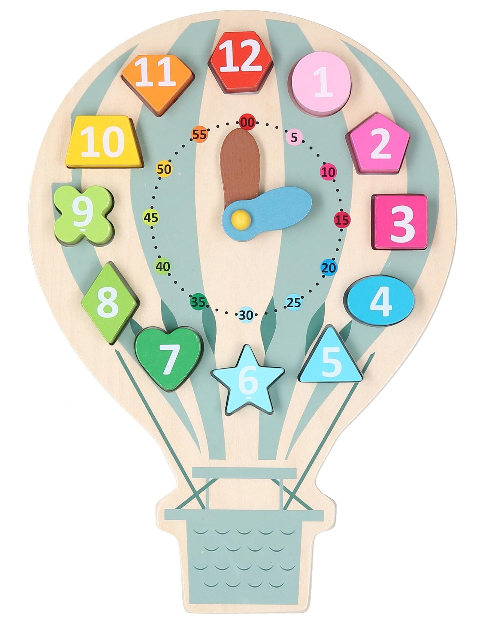 Die richtige Uhrzeit ist ein Kinderspiel mit der Lernuhr „Heißluftballon“ aus Holz